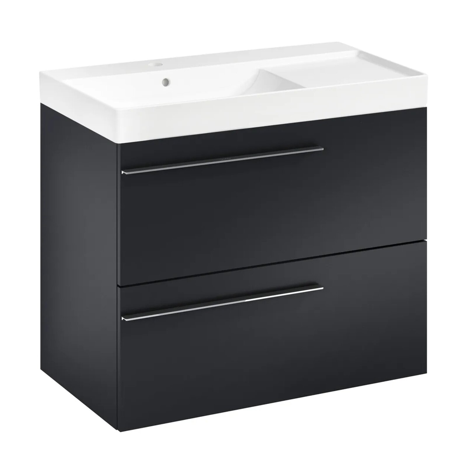Nábytkový set Laufen Ardo 80, skříňka 80 pod umyvadlo černá mat, umyvadlo Ardo 80 nábytkové levé bílé, madlo chrom