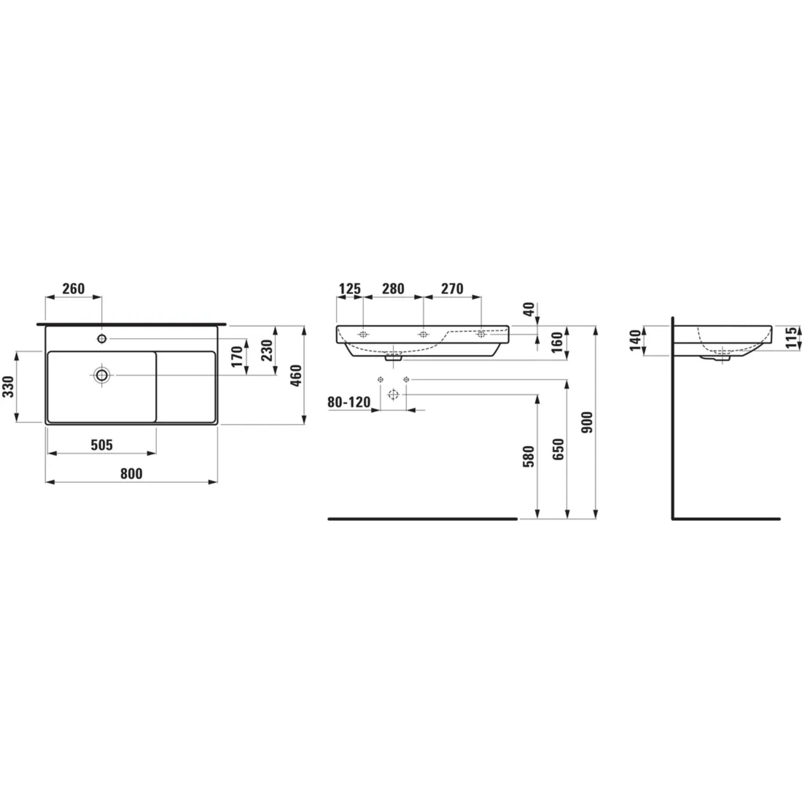 6300141              Umyvadlo Laufen Ardo 80 závěsné, levé, bílá, H817AR60001041