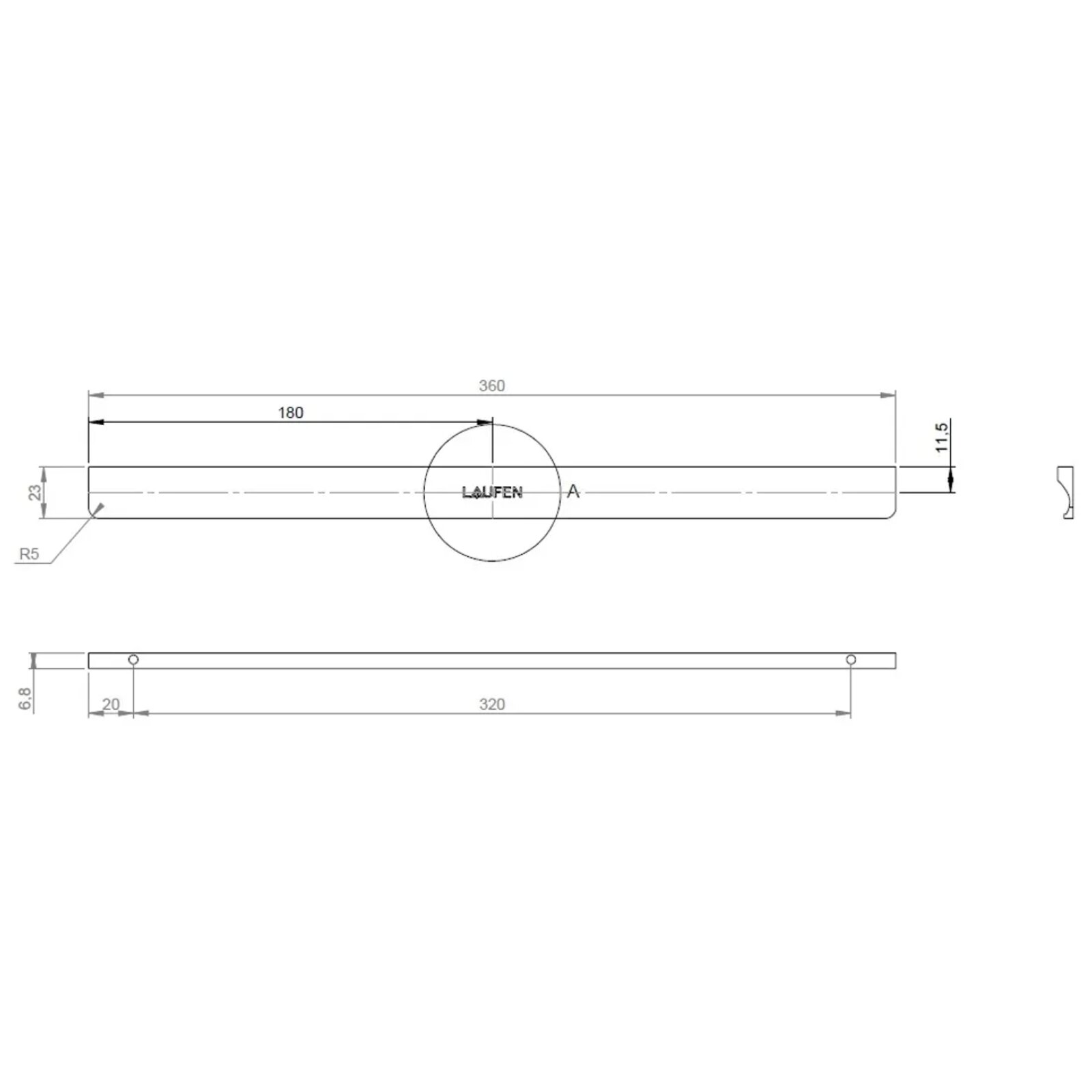 Úchytka Laufen Ardo 36 nábytková, 2ks, černá mat, H493921FLI7161