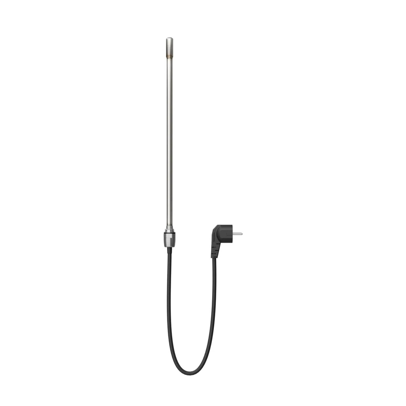 Topná tyč bez regulátoru. Standardní instalace do spodní sběrnice. Napětí: 230 V / 50 Hz. Připojovací závit: G 1/2" vnější (chrom). Délka topné tyče: 43,5 cm. Rovná šňůra: 120 cm ukončená vidlicí. Příkon: 400 W