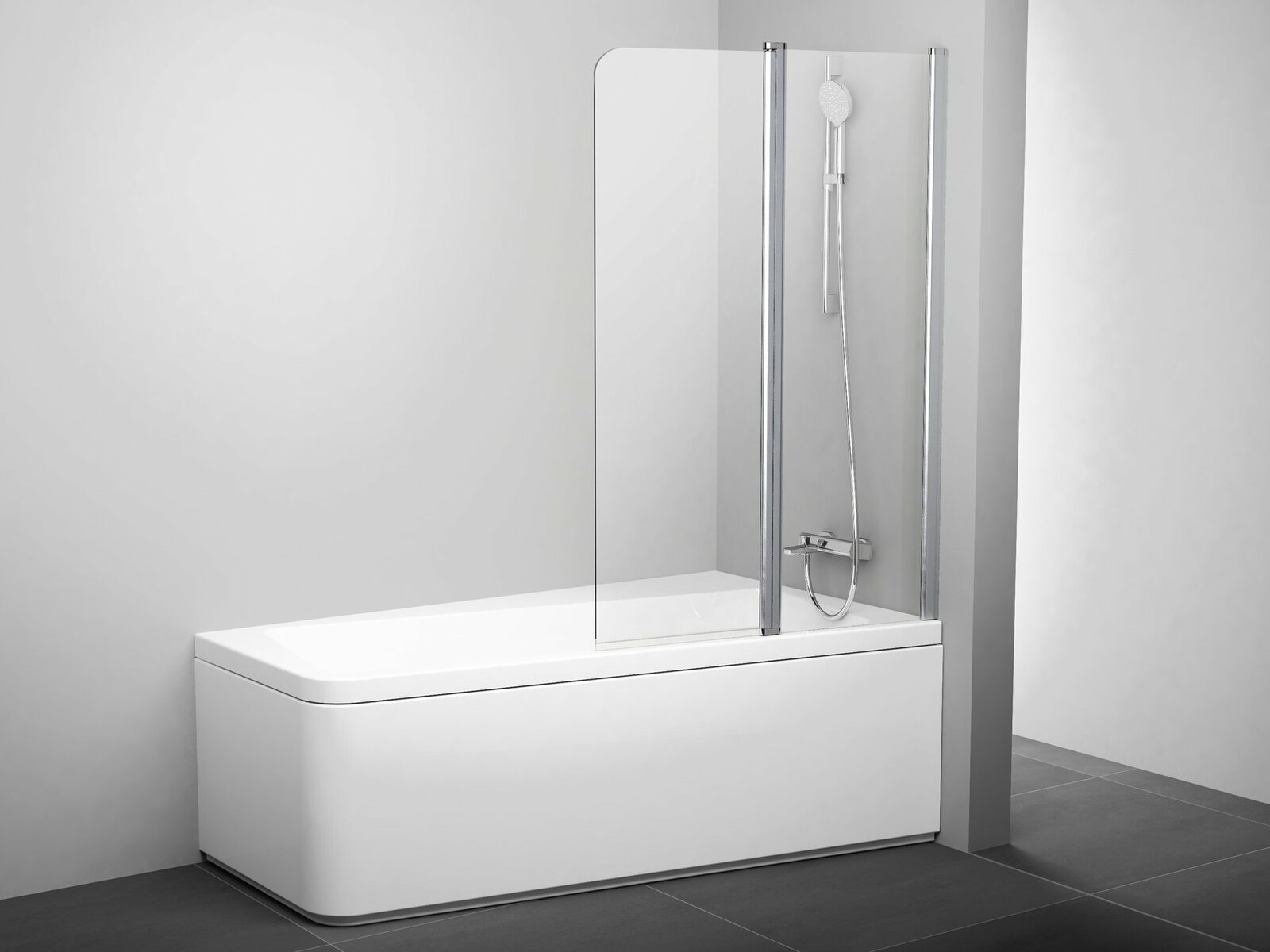 Dvoudílná pohyblivá vanová zástěna na rohové vany 10°. V provedení matný chrom a s výplní z čirého skla s ochrannou vrstvou Ravak AntiCalc®. Pravá varianta.- rozměry: 100 cm