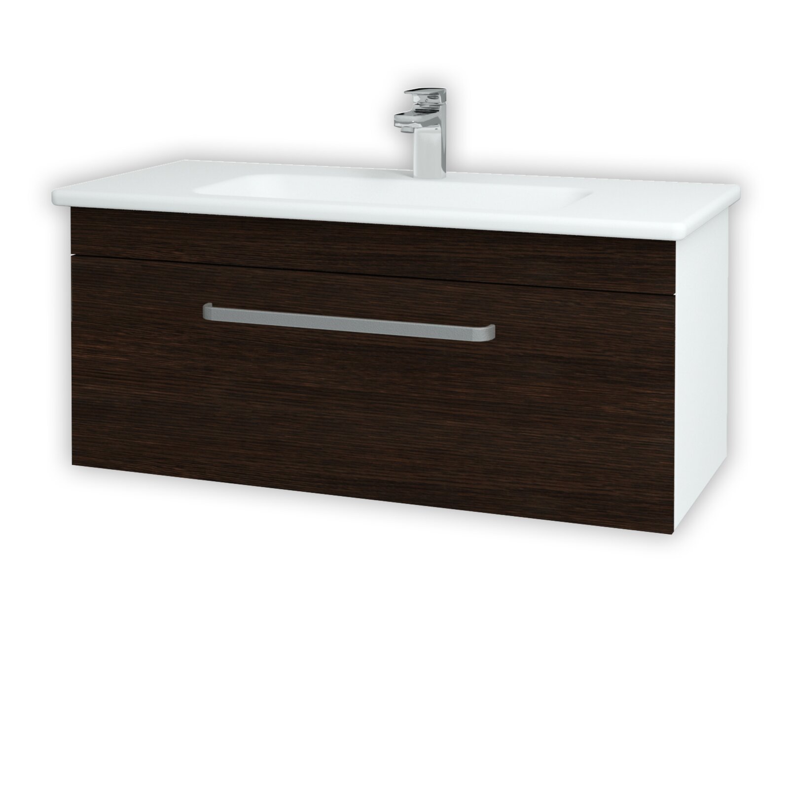 Koupelnová skříňka Aston SZZ 100 patří do exkluzivní koupelnové řady Aston. Moderní design skříňky Aston je dán hranatými tvary a designovým keramickým umyvadlem Euphoria 100. Zásuvka je uložena na kvalitních značkových výsuvech Hettich s celoživotní garancí kvality.