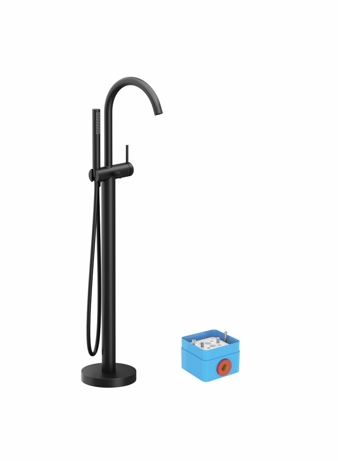 Zapojení vody do R-boxu je na kolmo k vaně. Základní těleso RB 07A.50 není součástí podlahové baterie FM 082.20BL.RB07A a je nutné jej dokoupit. R-box obsahuje materiál pro přichycení k podlaze, nezahrnuje přípojky pro vedení vody ani jiný vodoinstalační materiál. Na vnější čištění doporučujeme používat přípravek Ravak Cleaner Chrome.