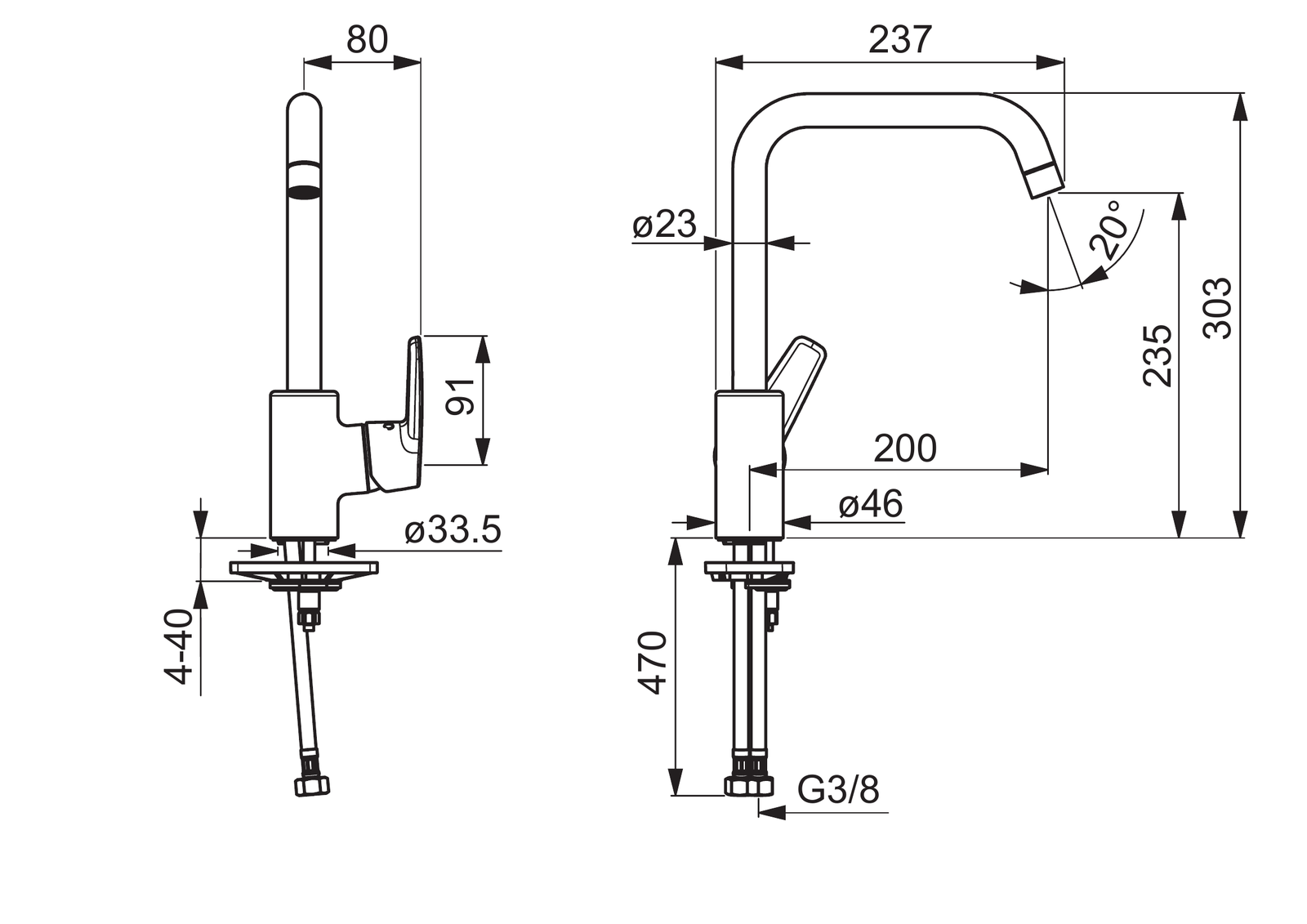 - Otočné výtokové rameno; Možnost omezení rozsahu otáčení