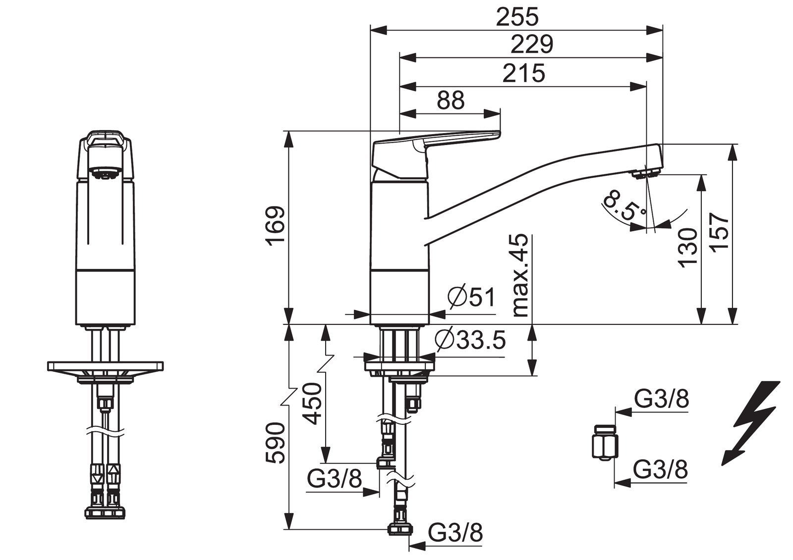 Baterie Hansa Polo dřezová stojánková pro beztlakové ohřívače vody chrom, 51591193