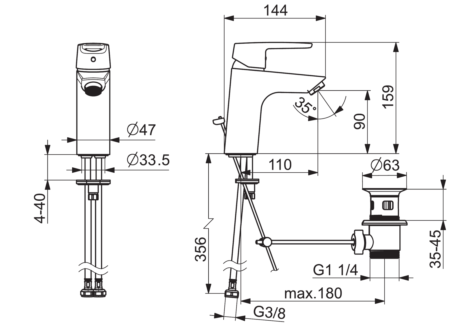 - Funkce pro nastavení maximální teploty a průtoku vody; Úspora energie (Cold Start) - studená voda ve střední poloze; Nastavitelný omezovač teploty vody (součástí dodávky, možnost dodatečné instalace)