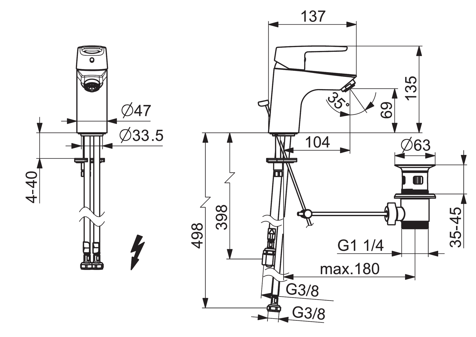 - 35 mm keramická kartuše pro ovládání teploty a průtoku vody