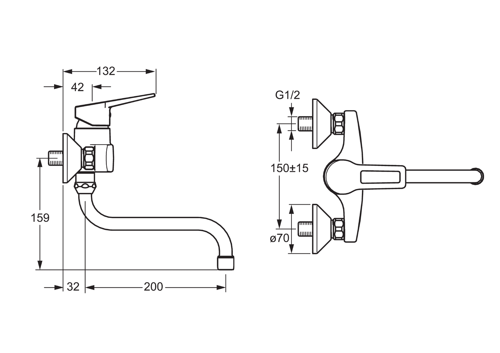 - Třmenová páka; Páka se symboly teplé a studené vody; Jedna ovládací páka / rukojeť