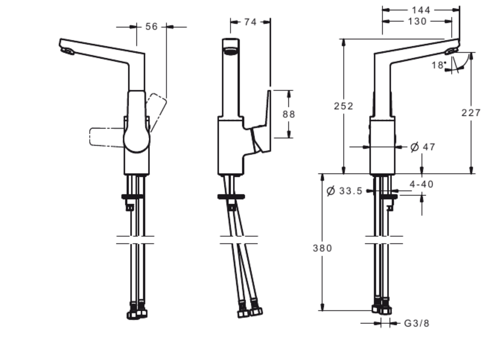 - Páka se symboly teplé a studené vody; Jedna ovládací páka / rukojeť