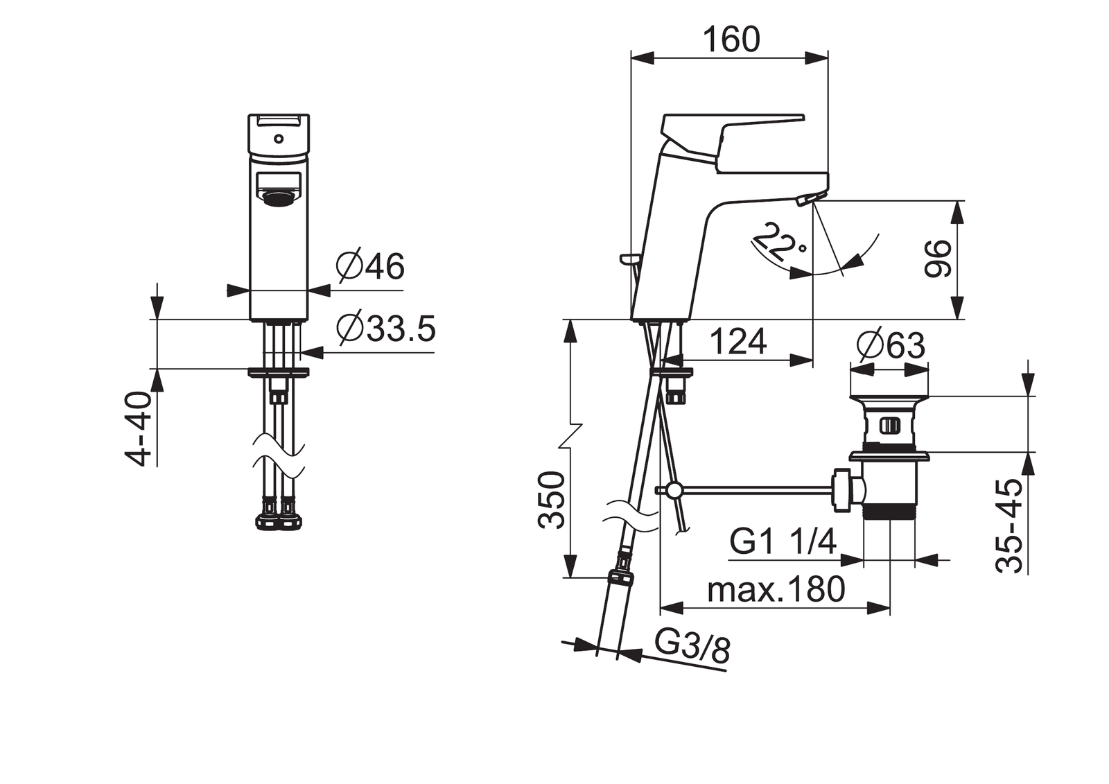 - Páka se symboly teplé a studené vody; Jedna ovládací páka / rukojeť