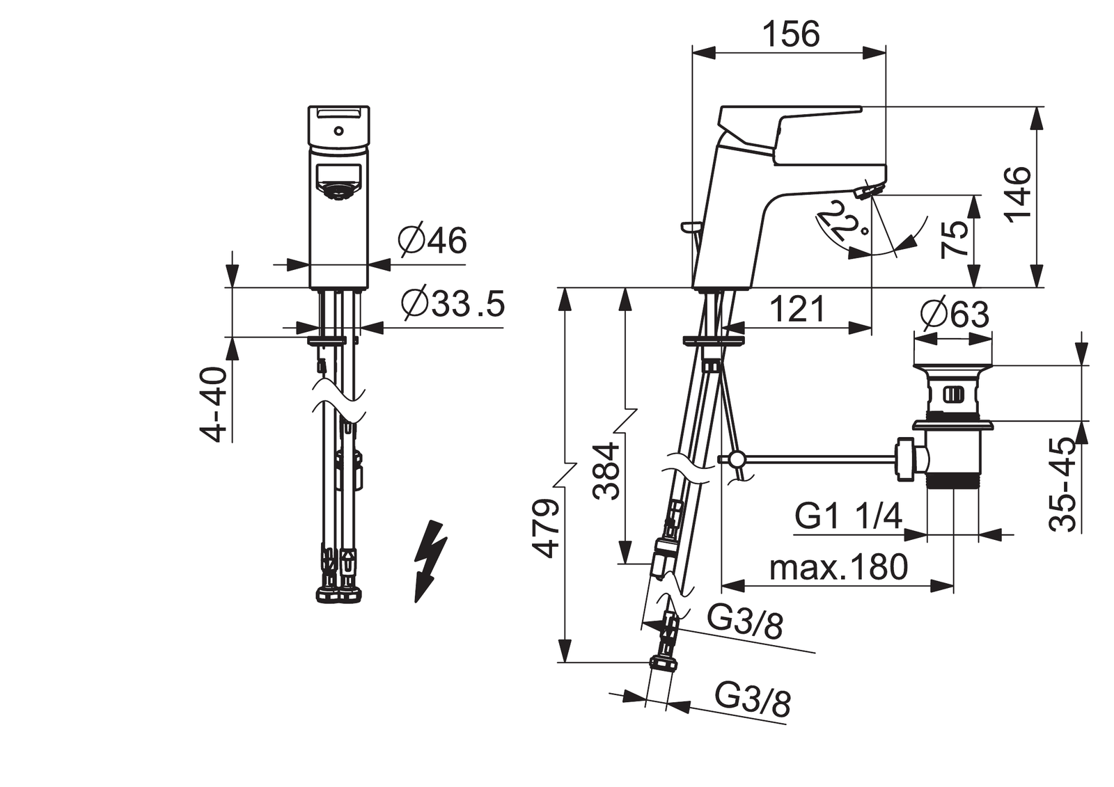 Baterie Hansa Twist umyvadlová stojánková pro beztlakové ohřívače vody chrom, 09131183