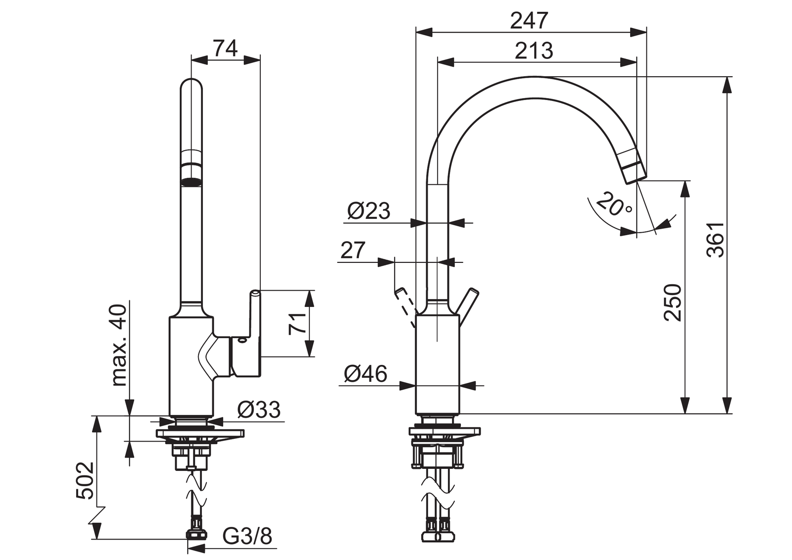 Baterie Hansa Vantis dřezová stojánková černá mat, 5220226733