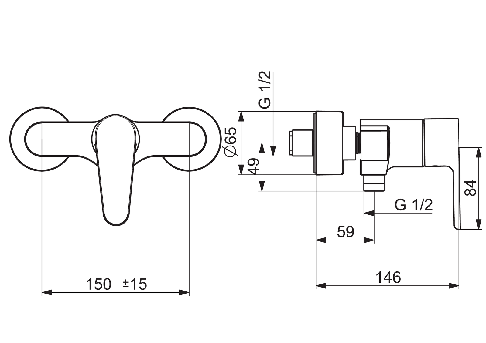 - Jedna ovládací páka / rukojeť; Páka se symboly teplé a studené vody