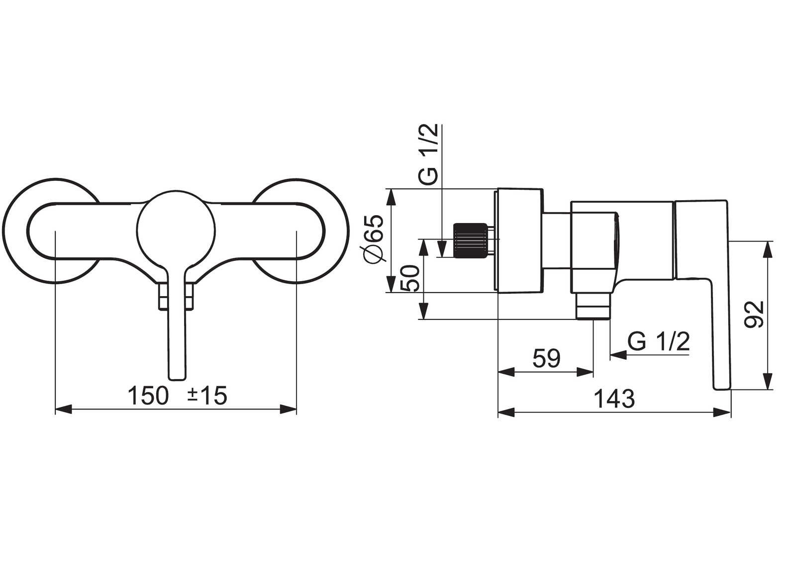 - Jedna ovládací páka / rukojeť; Pin - ovládací páka s tyčinkou; Páka se symboly teplé a studené vody