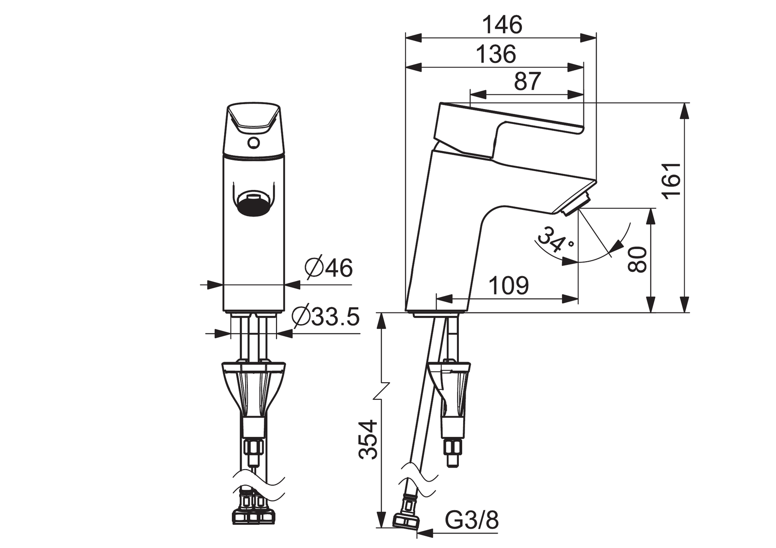- Jedna ovládací páka / rukojeť; Páka se symboly teplé a studené vody