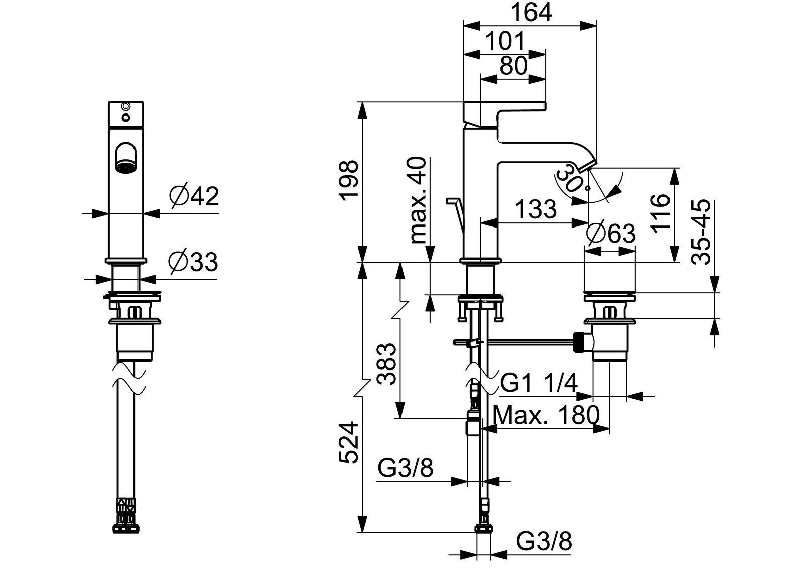 Baterie Hansa Vantis umyvadlová stojánková pro beztlakové ohřívače vody chrom, 54381107