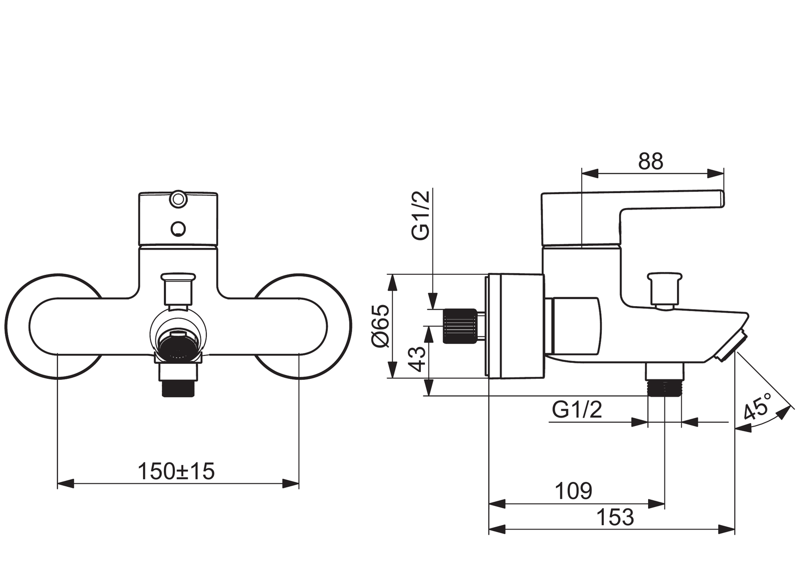 Baterie Hansa Vantis vanová/sprchová nástěnná černá mat, 5244226733