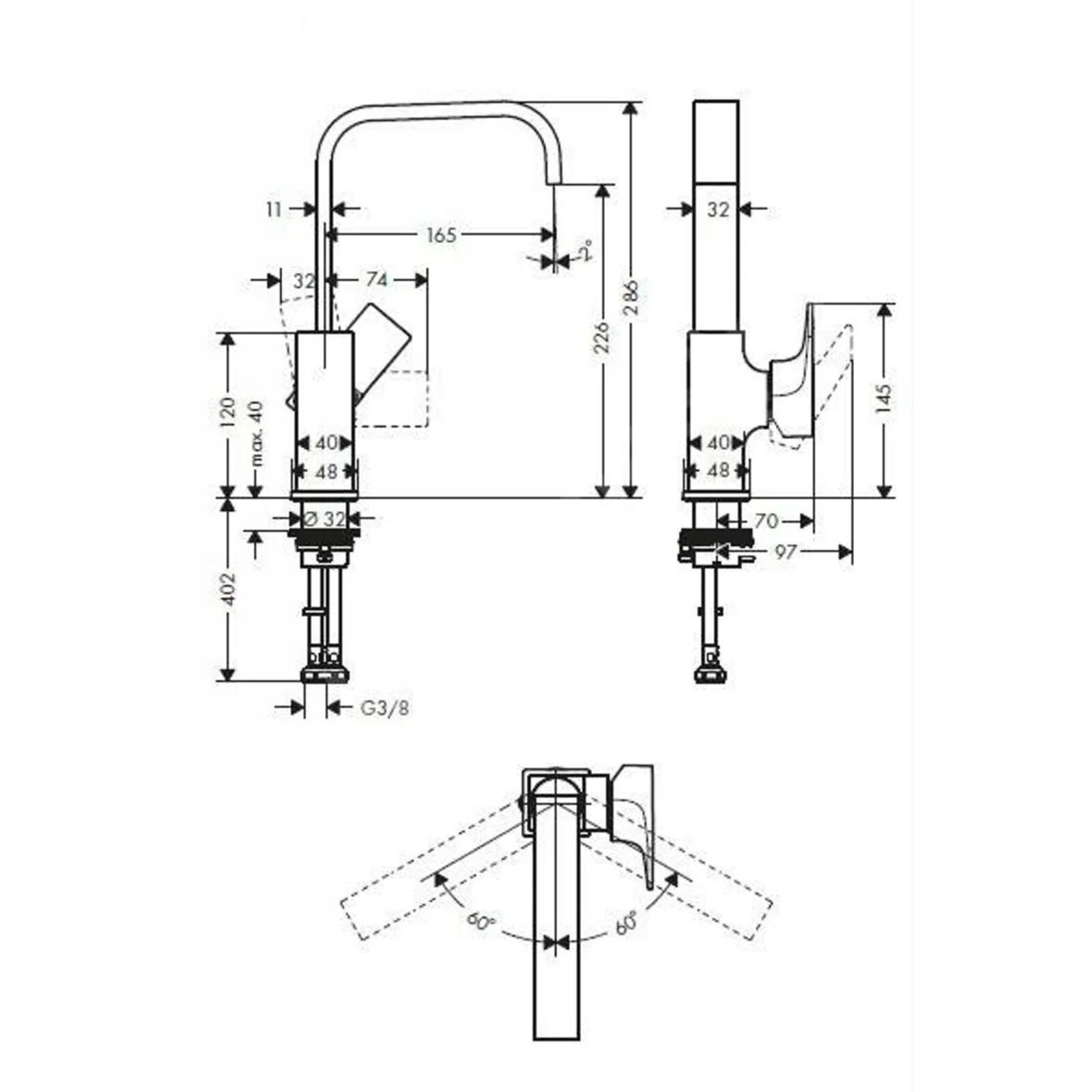 Obsahuje: páková umyvadlová baterie, odtoková souprava. Rozsah otáčení 120°, druh proudu: normální proud, nastavitelné omezení teploty, vhodné pro průtokový ohřívač, odtoková souprava Push-Open G 11, materiál odtokové soupravy: kov, způsob připojení: převlečné matky G 3/8, rozměr přívodů: DN15, pozice páky na boku - není vhodné pro umývadlové mísy. Součást dodávky: páková umyvadlová baterie, přívodní hadice, upevnění dříku, montážní klíč, montážní návod.