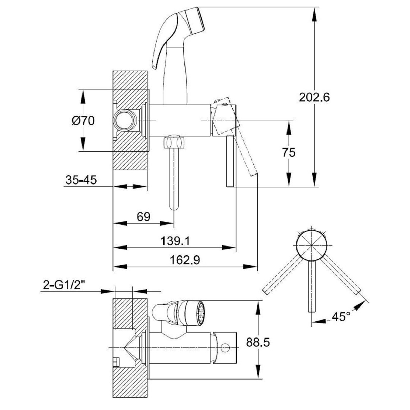 S držákem sprchy, kovovou hadicí a sprchovou růžicí se STOP-ventilem. Baterie obsahuje podomítkové připojení 1/2". Připojení na teplou i studenou vodu. Téma bidetu řada domácností neotevře, neboť si představí klasickou bidetovou mísu, jež stojí vedle toalety. Ne každý má prostorové možnosti nebo ochotu k rekonstrukci. Přesto na intimní hygienu nemusíte rezignovat. Řešením je právě set bidetové spršky a pákové baterie, které přinesou maximální komfort, a přitom zabírají minimum místa.