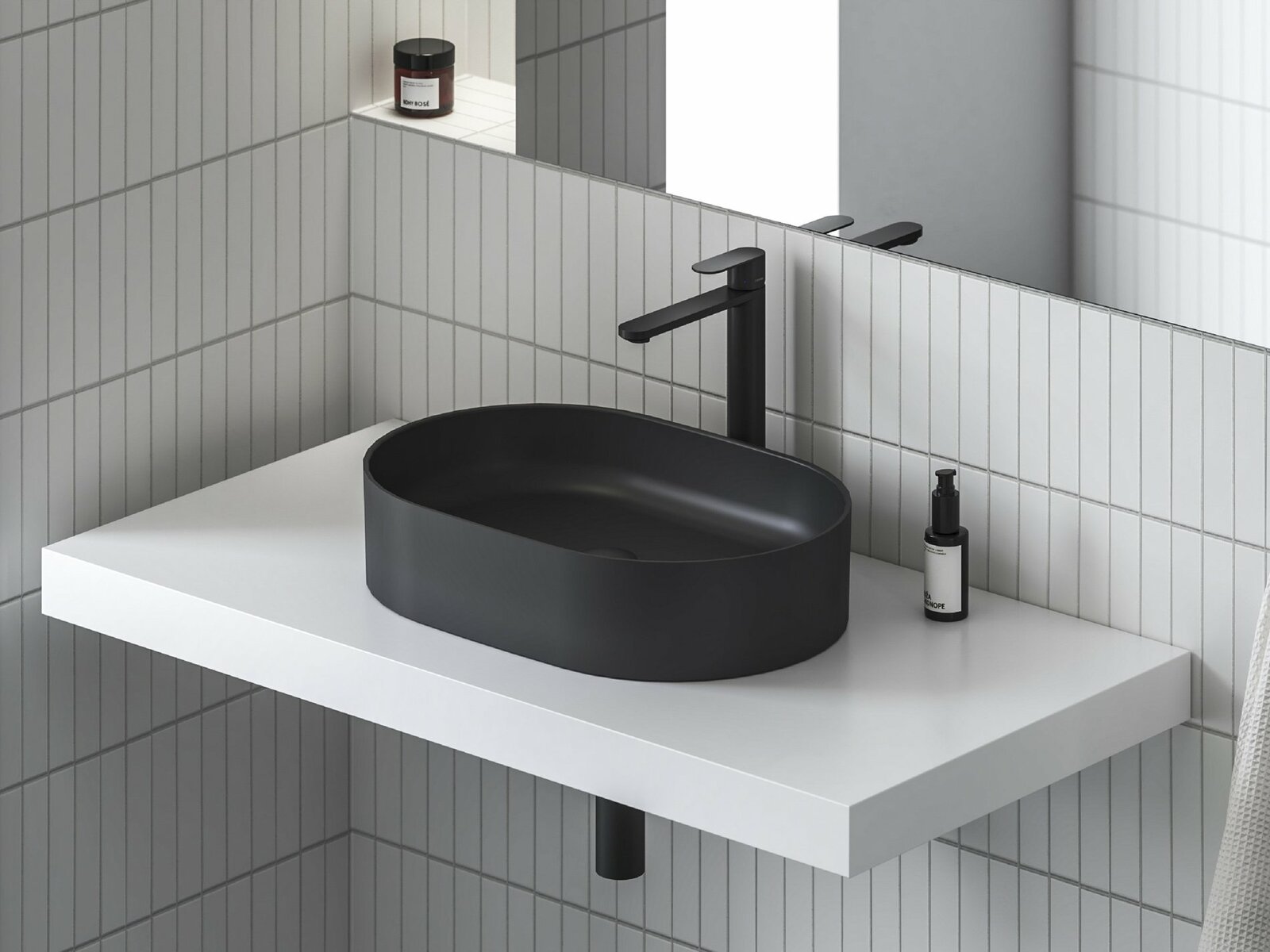 Stojánková umyvadlová baterie Chrome II, bez výpusti. V černém provedení.- výška baterie: 300 mm, ExtraComfort Zone - extra prodloužená