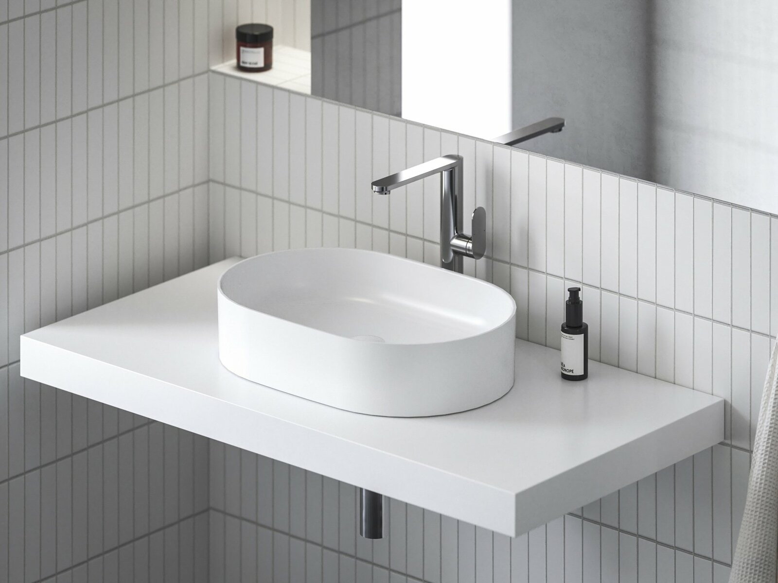 Stojánková umyvadlová baterie Chrome II s boční pákou, bez výpusti. V chromovém provedení. Funkce EcoFlow, která šetří spotřebu vody.- výška baterie: 301 mm, ExtraComfort Zone - extra prodloužená s boční pákou
