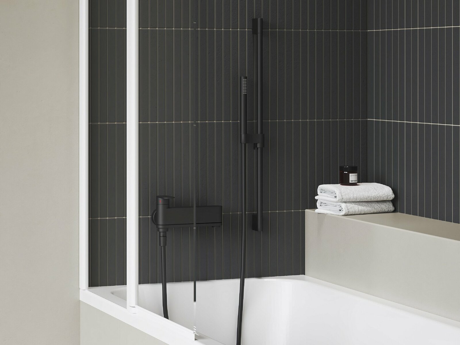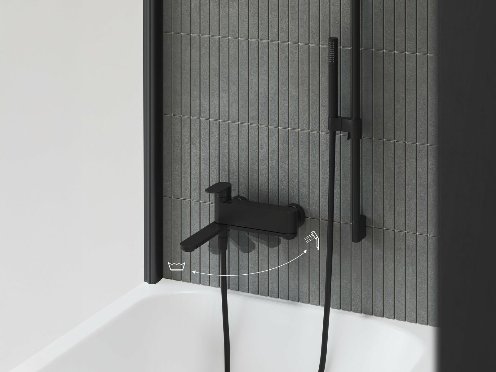 Nástěnná vanová baterie Chrome II s otočným přepínacím ramínkem, bez sprchového setu. V černém provedení.- rozteč baterie: 150 mm