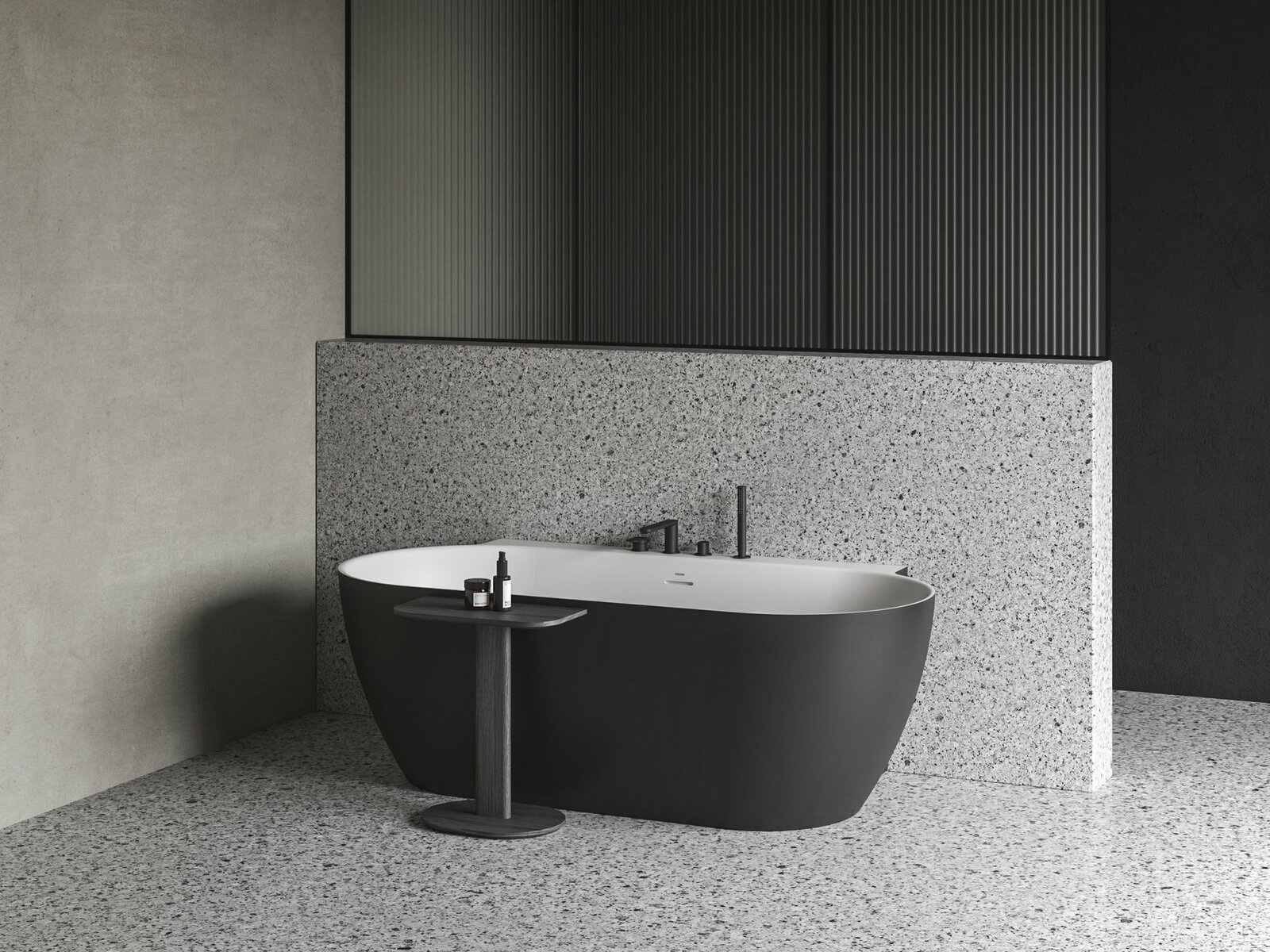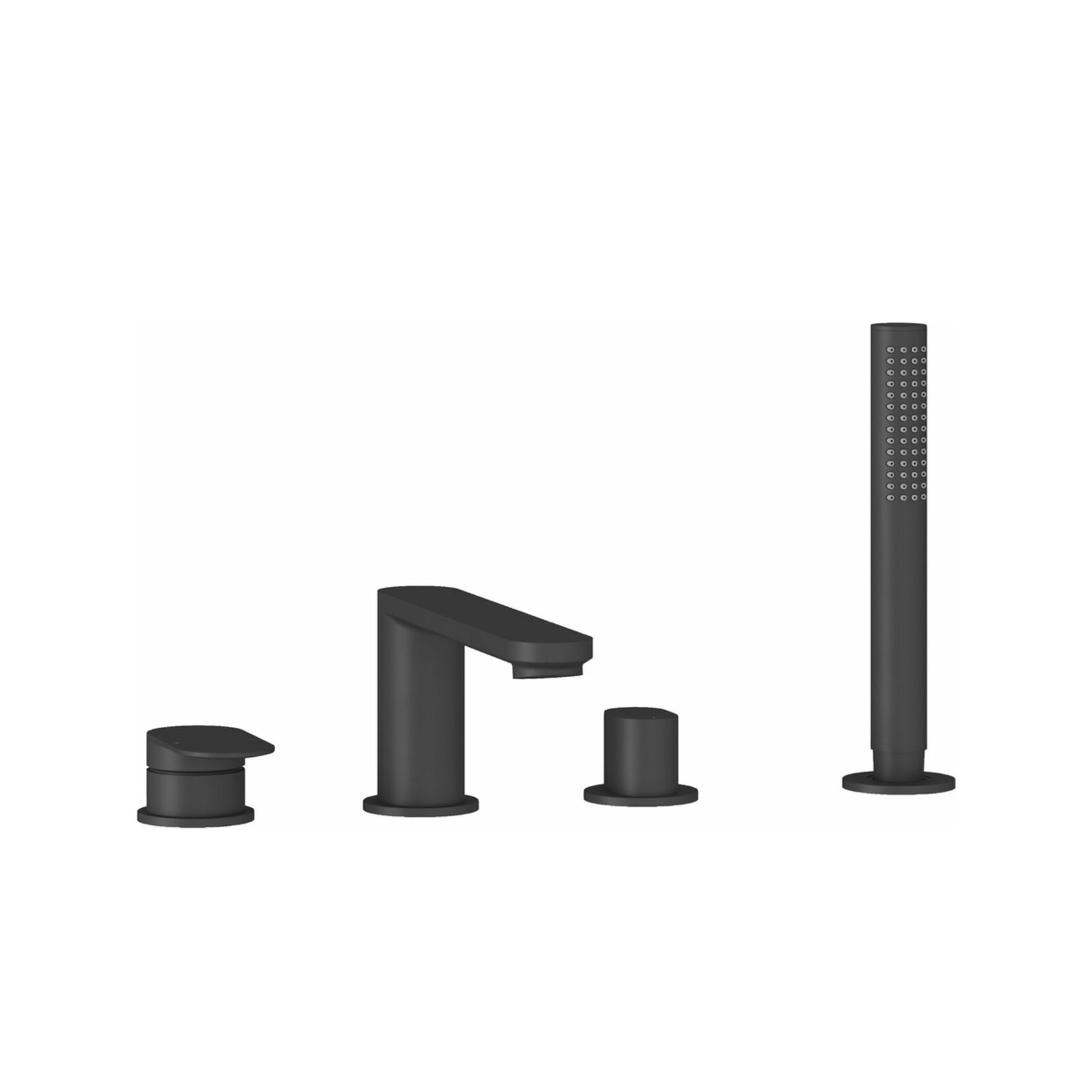 Vanová stojánková čtyřotvorová baterie na okraj vany Chrome II, se sprchovým setem. V černém provedení.- kartuš (průměr, materiál): 35 mm, keramická