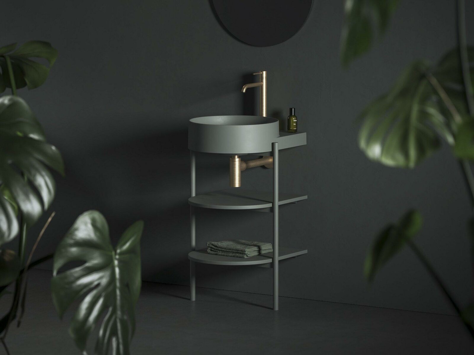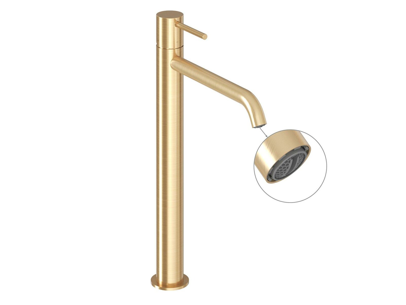 Stojánková umyvadlová baterie Espirit, bez výpusti. V provedení Gold Brushed. Skrytý perlátor s funkcí EcoFlow. Funkce BeCool, která šetří spotřebu vody.- výška baterie: 341 mm