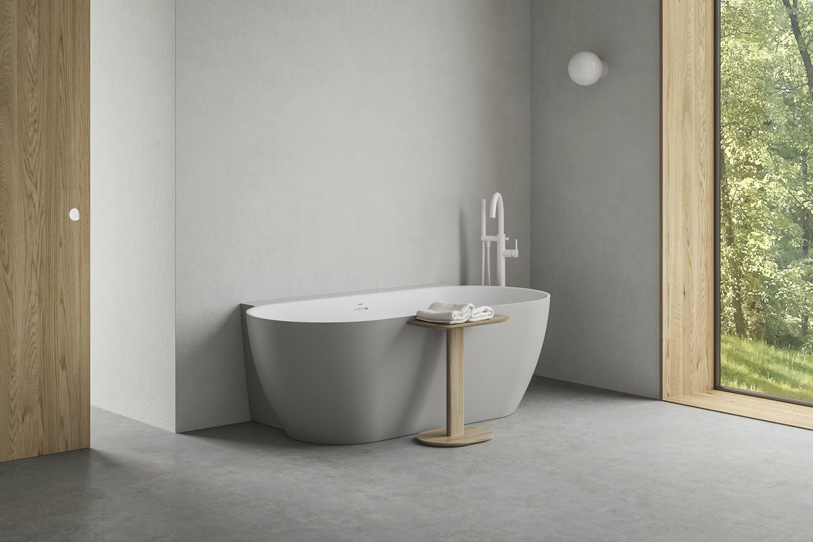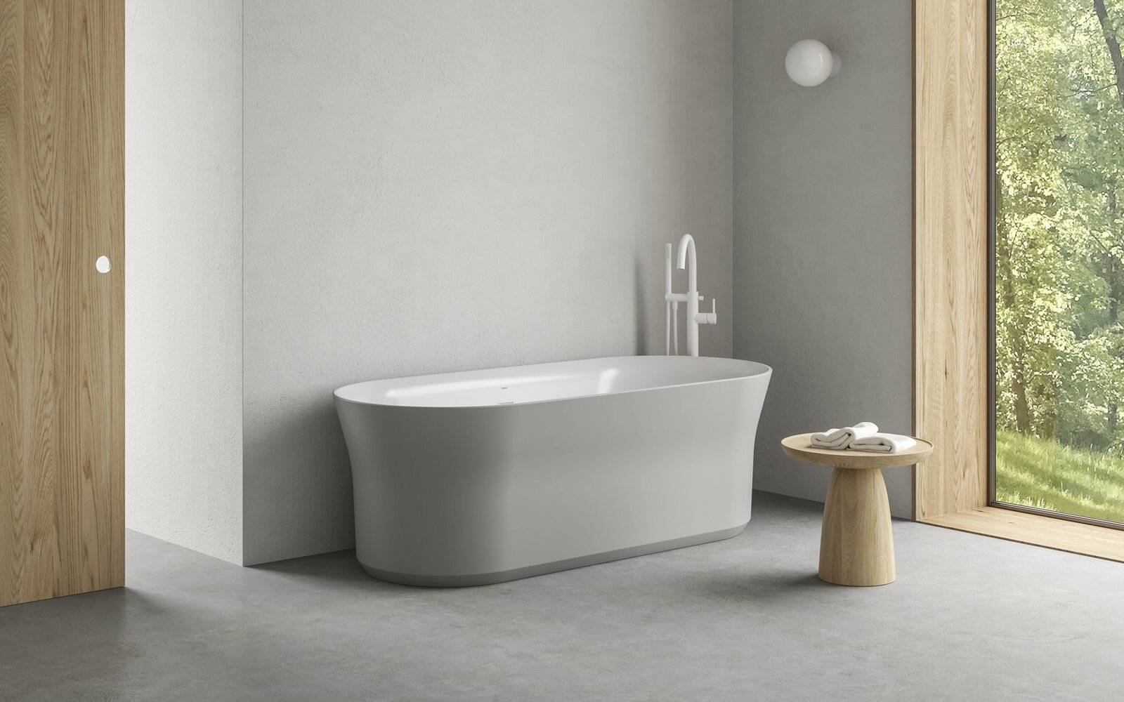 Vanová baterie do podlahy Espirit se sprchovým setem, určená pro R-box. V provedení White Velvet.- kartuš (průměr, materiál): 35 mm, keramická