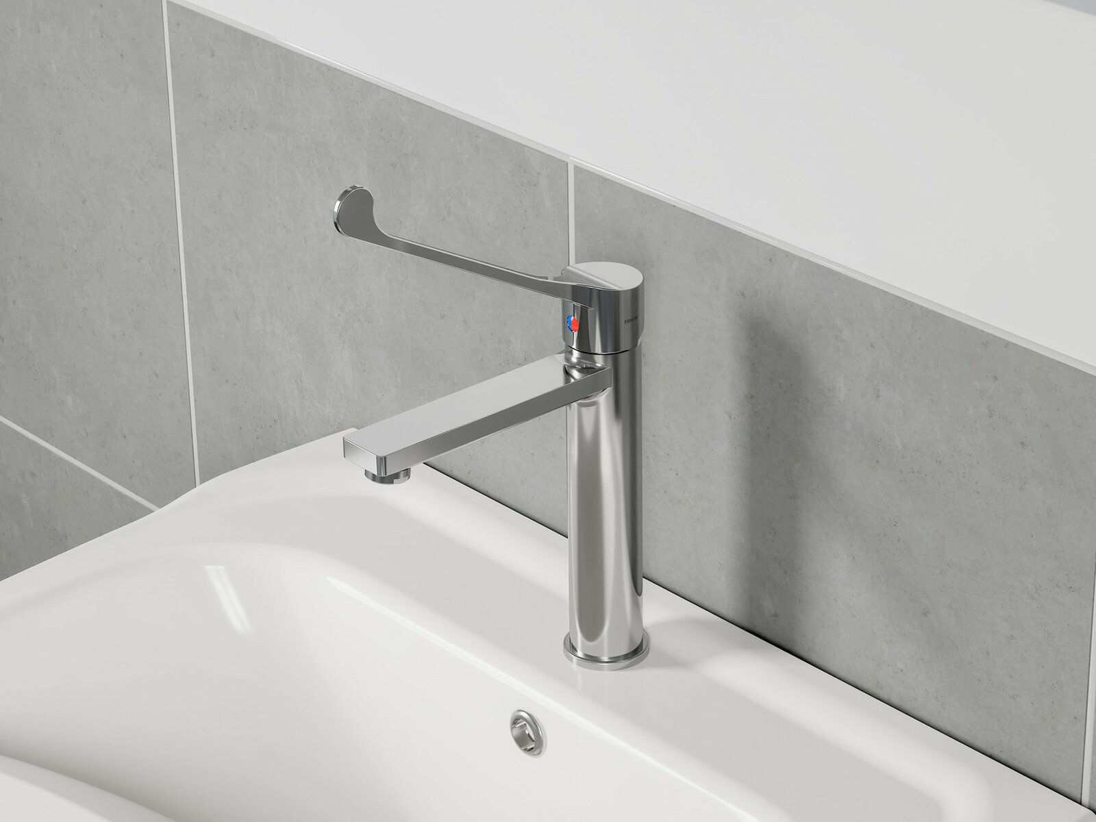 Tato speciálně upravená vodovodní baterie s prodlouženou lékařskou pákou je zvláště vhodná pro osoby tělesně handicapované, seniory a osoby s omezenou pohyblivostí. Uplatní se prostředí nemocnic, rehabilitačních a zdravotnických zařízení, kde je nezbytné ovládat vodu pomocí předloktí místo dlaně. Uvnitř baterie je důmyslný perlátor s funkcí EcoFlow. Průtok je omezený na 4 l za minutu a obohacený o vzduch. Nejspíš si toho ani nevšimnete, ale projeví se to na vaší spotřebě vody, která bude nižší než u běžné baterie. Doporučujeme kombinovat s umyvadlem a WC řady Safe. Na vnější čištění doporučujeme používat čistící přípravek RAVAK Cleaner Chrome.