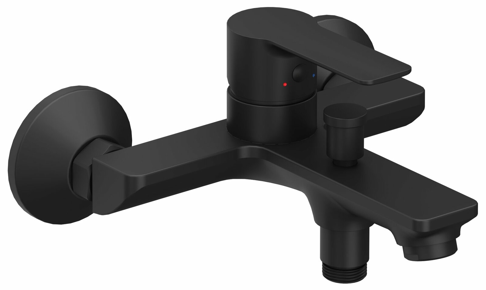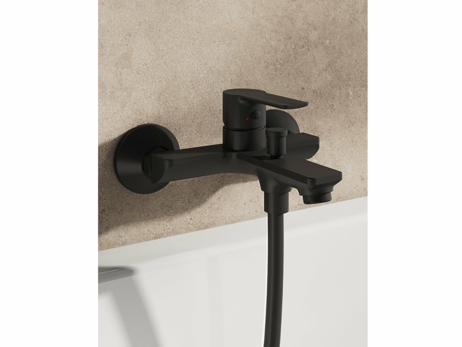 Nástěnná vanová baterie Solar, bez sprchového setu. V černém provedení.- rozteč baterie: 150 mm