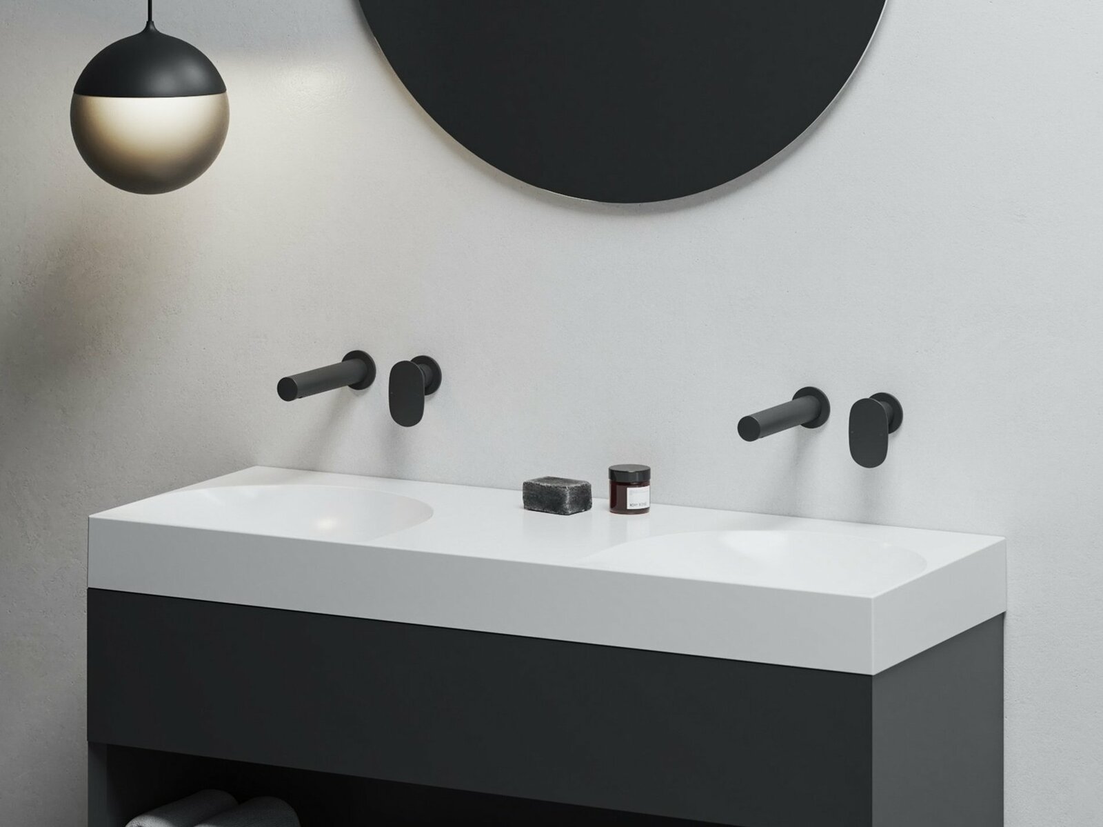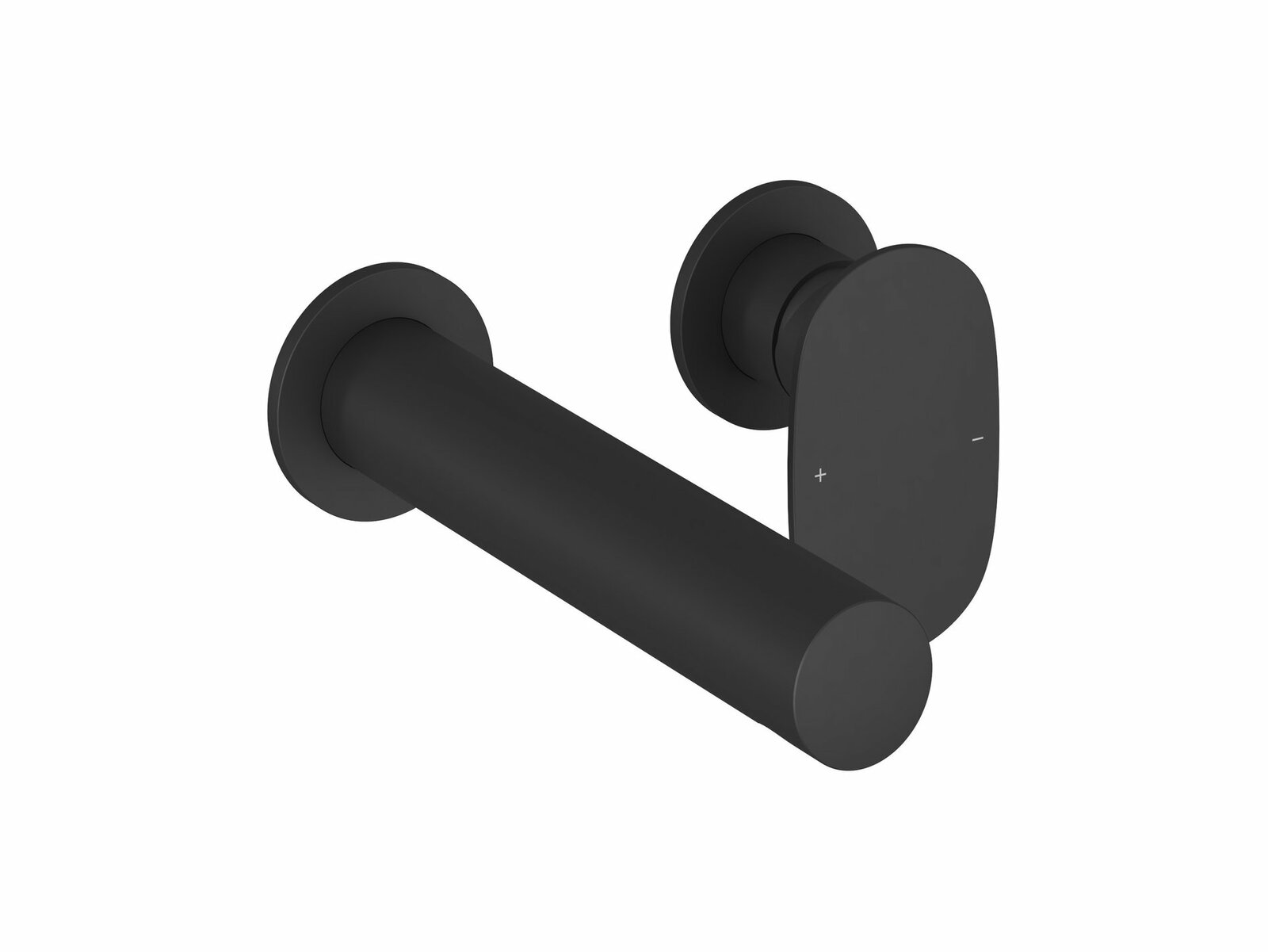 Podomítková umyvadlová baterie Spring, celotělová. V černém matném provedení. Skrytý perlátor s funkcí EcoFlow.- délka výtokového ramínka: 203 mm
