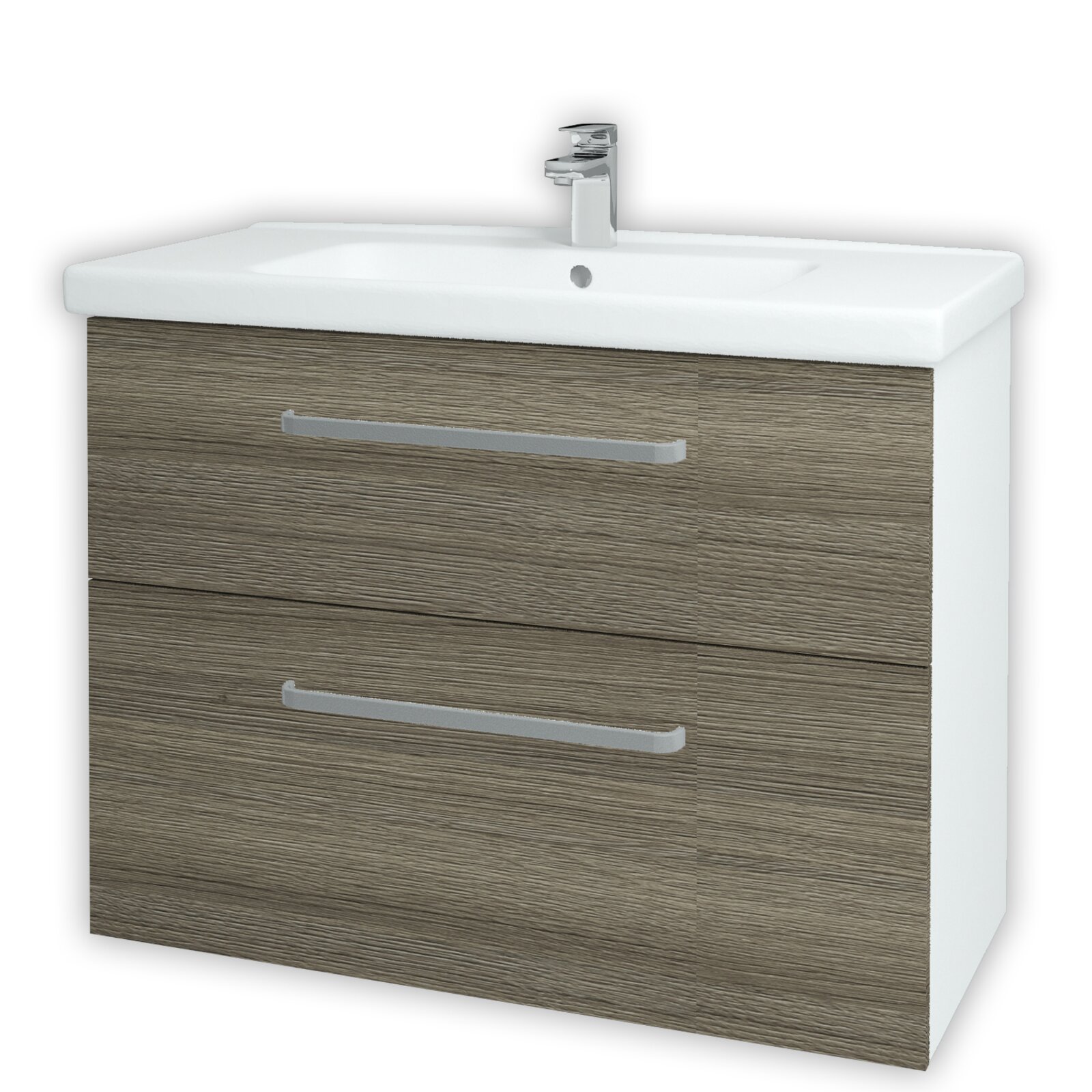Součástí ceny této koupelnové skříňky je kvalitní keramické umyvadlo Harmonia 100 s hranatým tvarem a pochromovaným odtokem. Vanička umyvadla má v přední části praktické zešikmení. Horní plocha umyvadla je rovná a může sloužit pro odkládání různých předmětů.