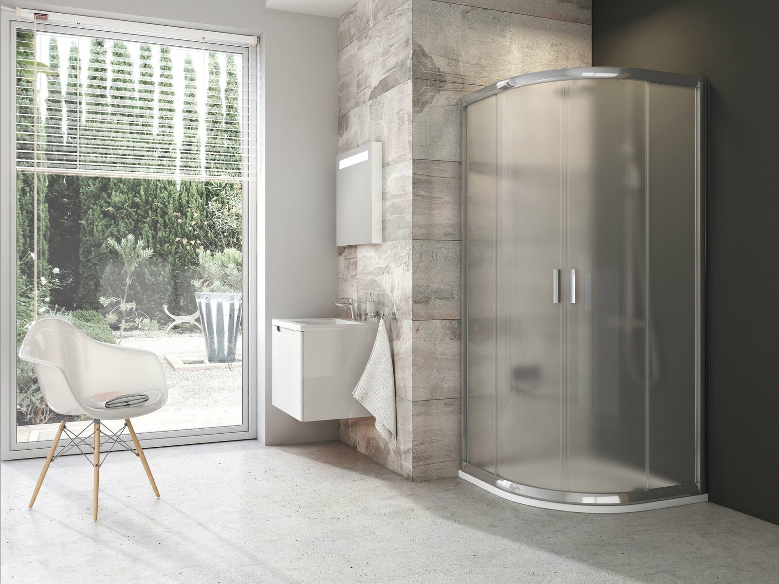 Čtyřdílný čtvrtkruhový sprchový kout Blix v provedení lesklý chrom a s výplní z neprůhledného skla s dekorem Grape. Sklo je ošetřeno ochrannou vrstvou Ravak AntiCalc®. Posuvný systém otevírání.- rozměr: 90x90 cm
