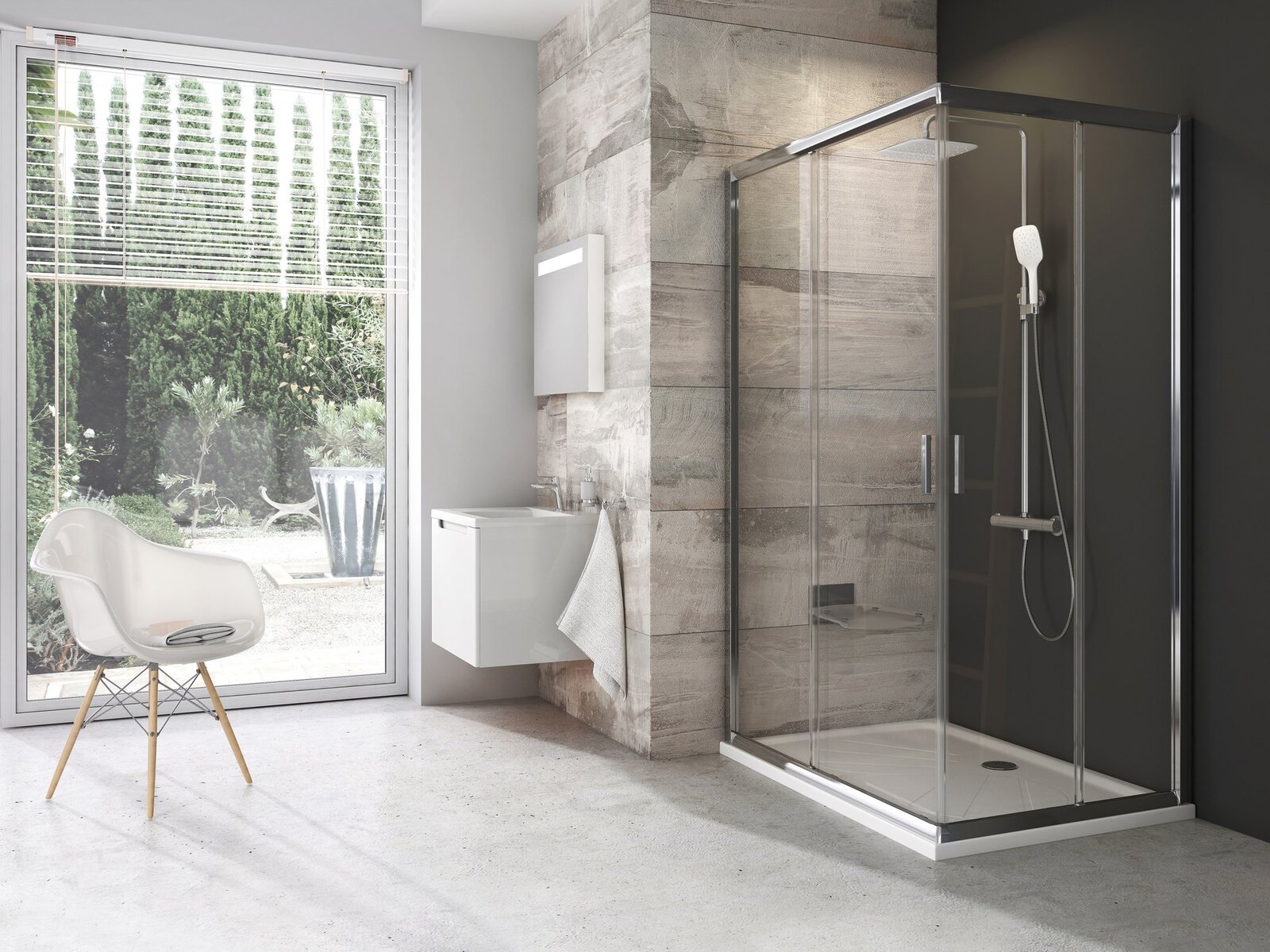 1/2 rohového sprchového koutu Blix v provedení lesklý chrom a s výplní z čirého skla s ochrannou vrstvou Ravak AntiCalc®. Posuvný systém otevírání. Kompletní sprchový kout je složen ze dvou sprchových dveří!- rozměr: 110 cm (1/2 sprchového koutu)