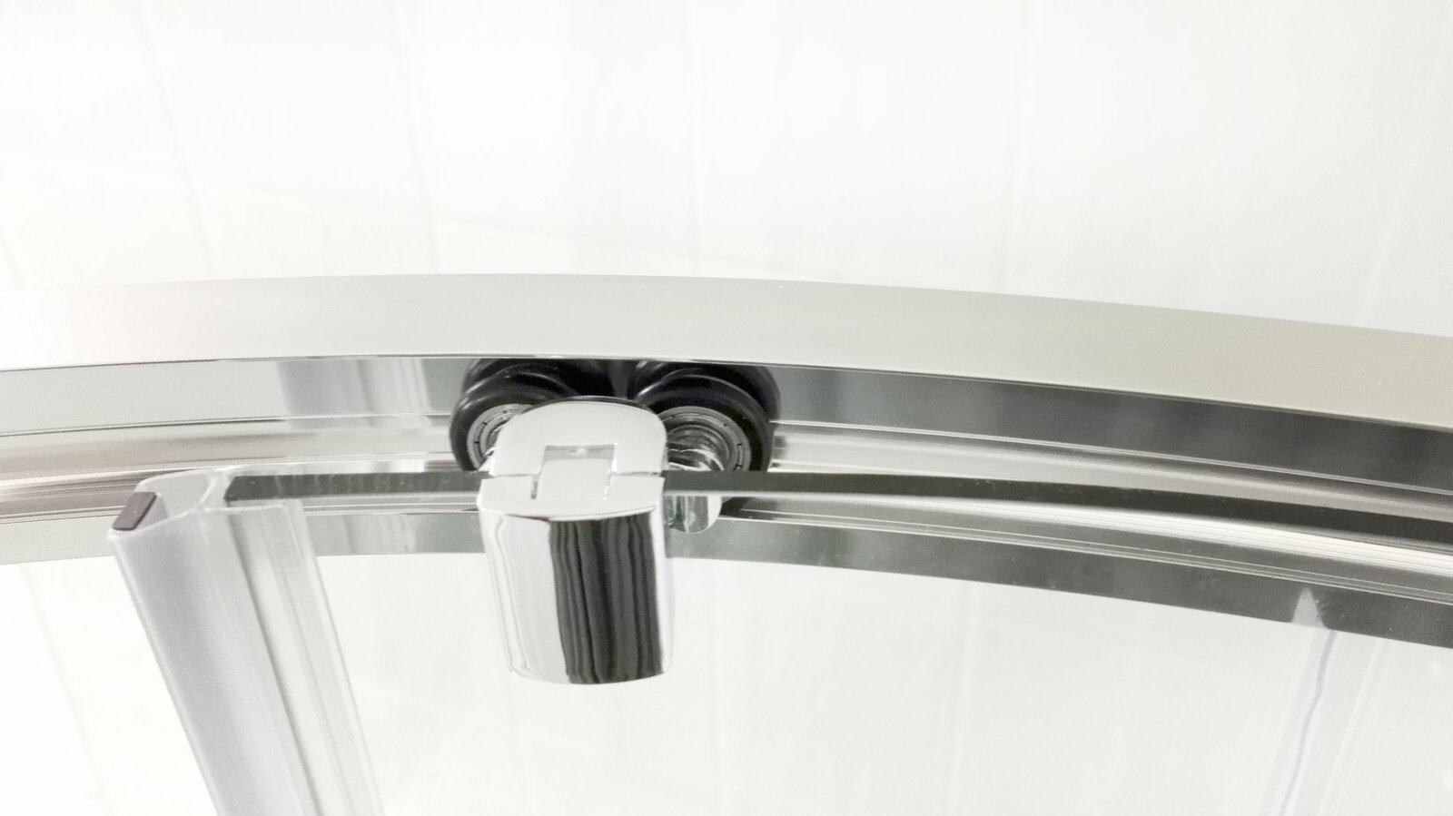 Čtyřdílný čtvrtkruhový sprchový kout Blix Slim v provedení lesklý chrom a s výplní z čirého skla s ochrannou vrstvou Ravak AntiCalc®. Posuvný systém otevírání.- rozměr: 90x90 cm