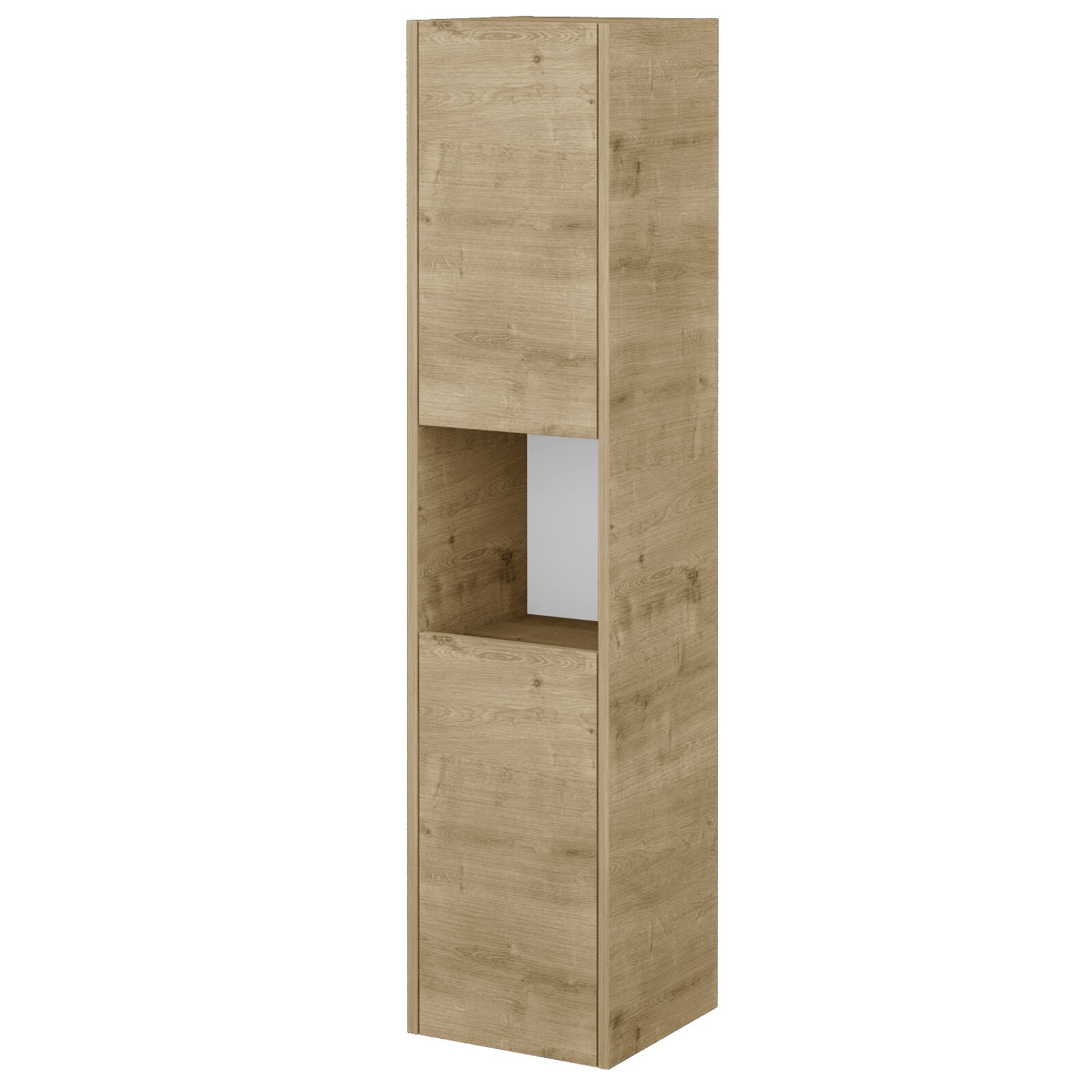 Vysoká závěsná skřín BONO SVD2O 35 koupelnové řady BONO má v dolní a horní části skříňku s dvířky. Uprostřed mezi nimi je umístěna praktická polička.