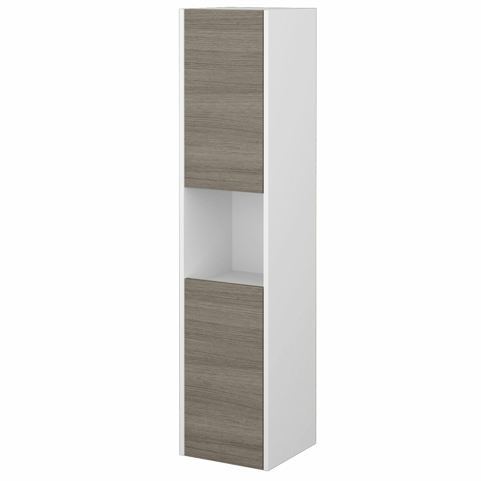 Vysoká závěsná skřín BONO SVD2O 35 koupelnové řady BONO má v dolní a horní části skříňku s dvířky. Uprostřed mezi nimi je umístěna praktická polička.