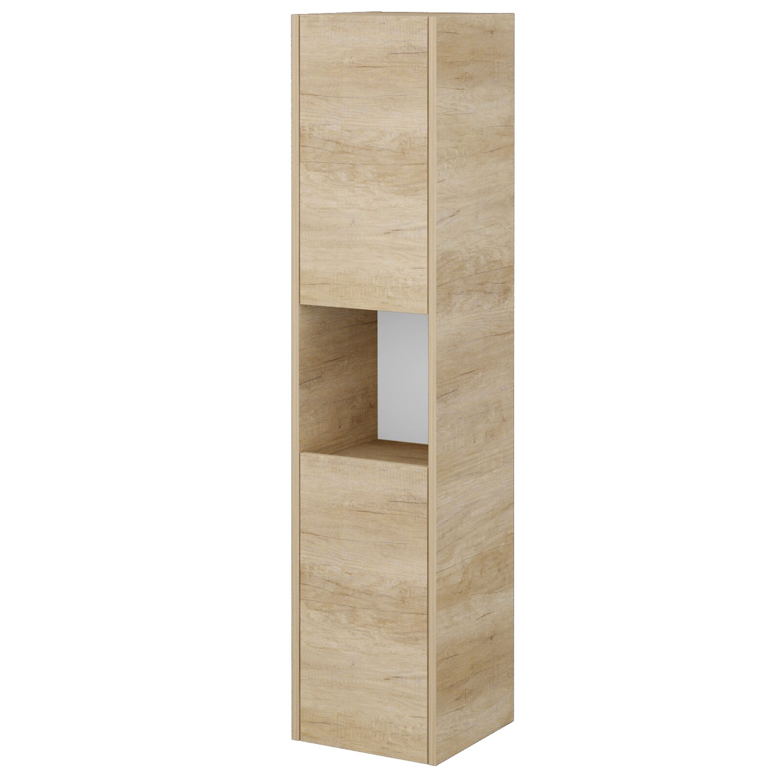 Vysoká závěsná skřín BONO SVD2O 35 koupelnové řady BONO má v dolní a horní části skříňku s dvířky. Uprostřed mezi nimi je umístěna praktická polička.