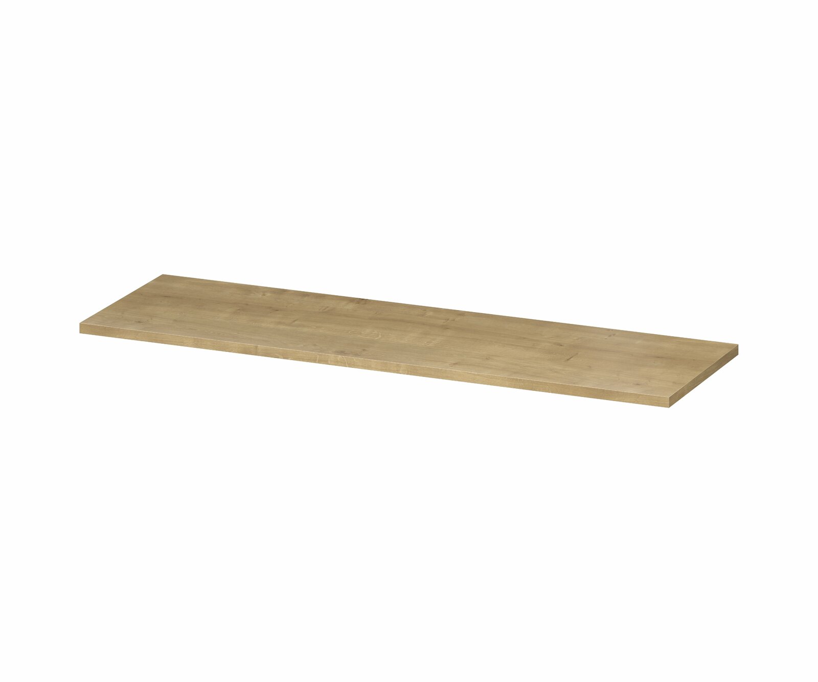 Deska pro konfiguraci s podpultovým nábytkem, na kterou můžete namontovat umyvadlo nebo umístit drobné předměty a kosmetiku. Pracovní deska je vyrobena z laminované dřevotřískové desky v barvě dub.