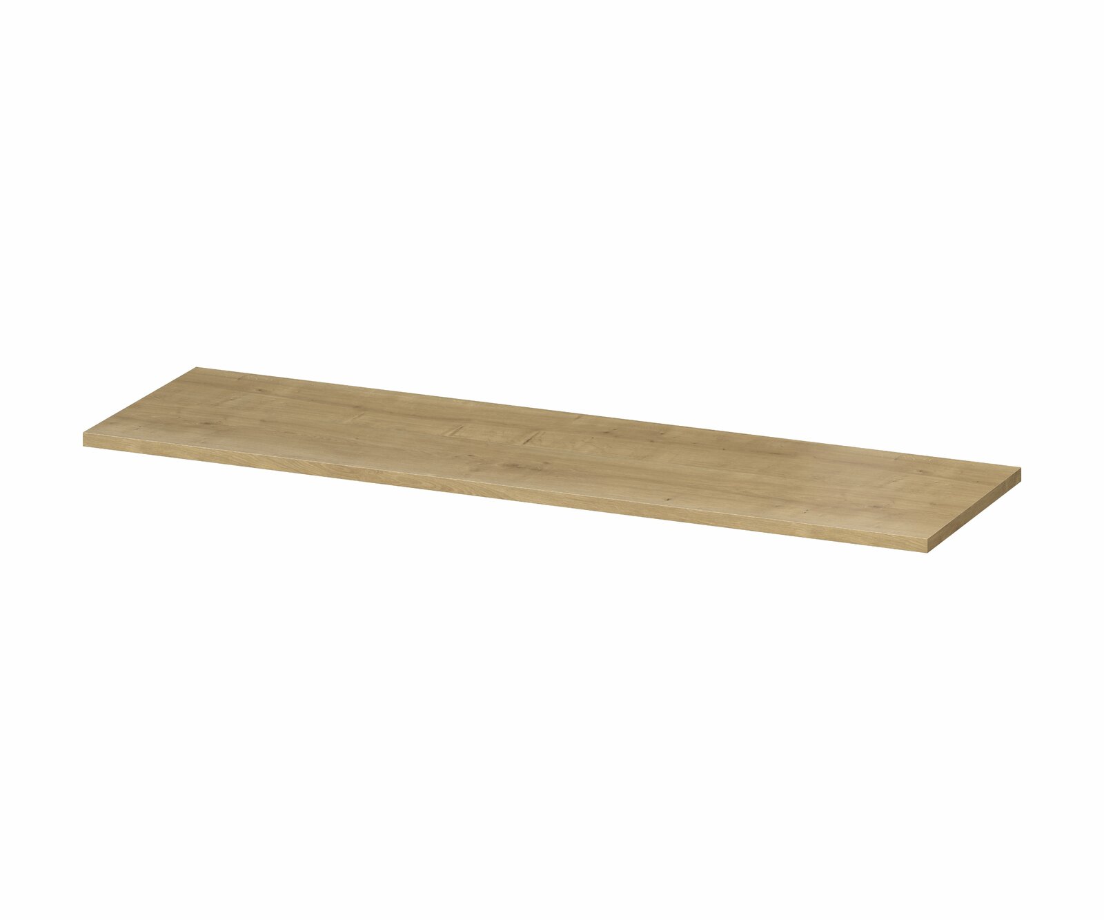 Deska pro konfiguraci s podpultovým nábytkem, na kterou můžete namontovat umyvadlo nebo umístit drobné předměty a kosmetiku. Pracovní deska je vyrobena z laminované dřevotřískové desky v barvě dub.