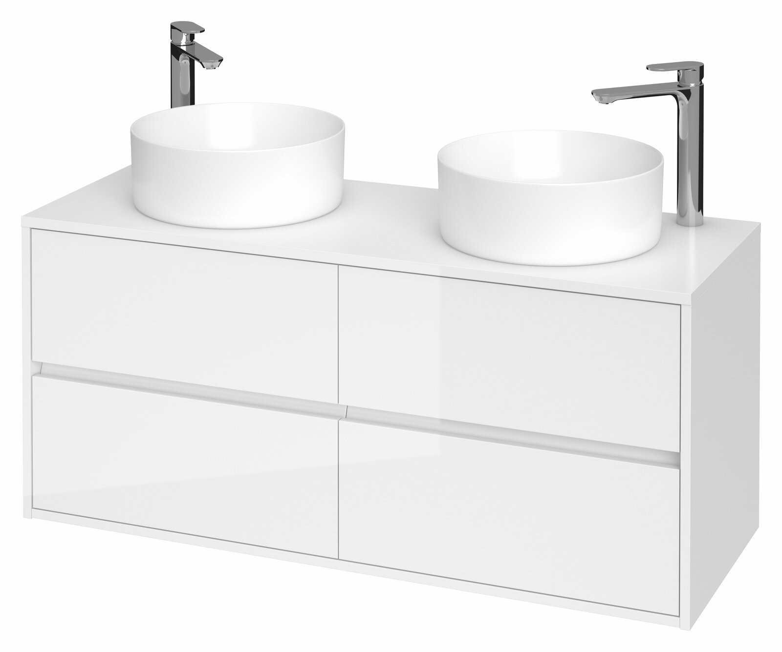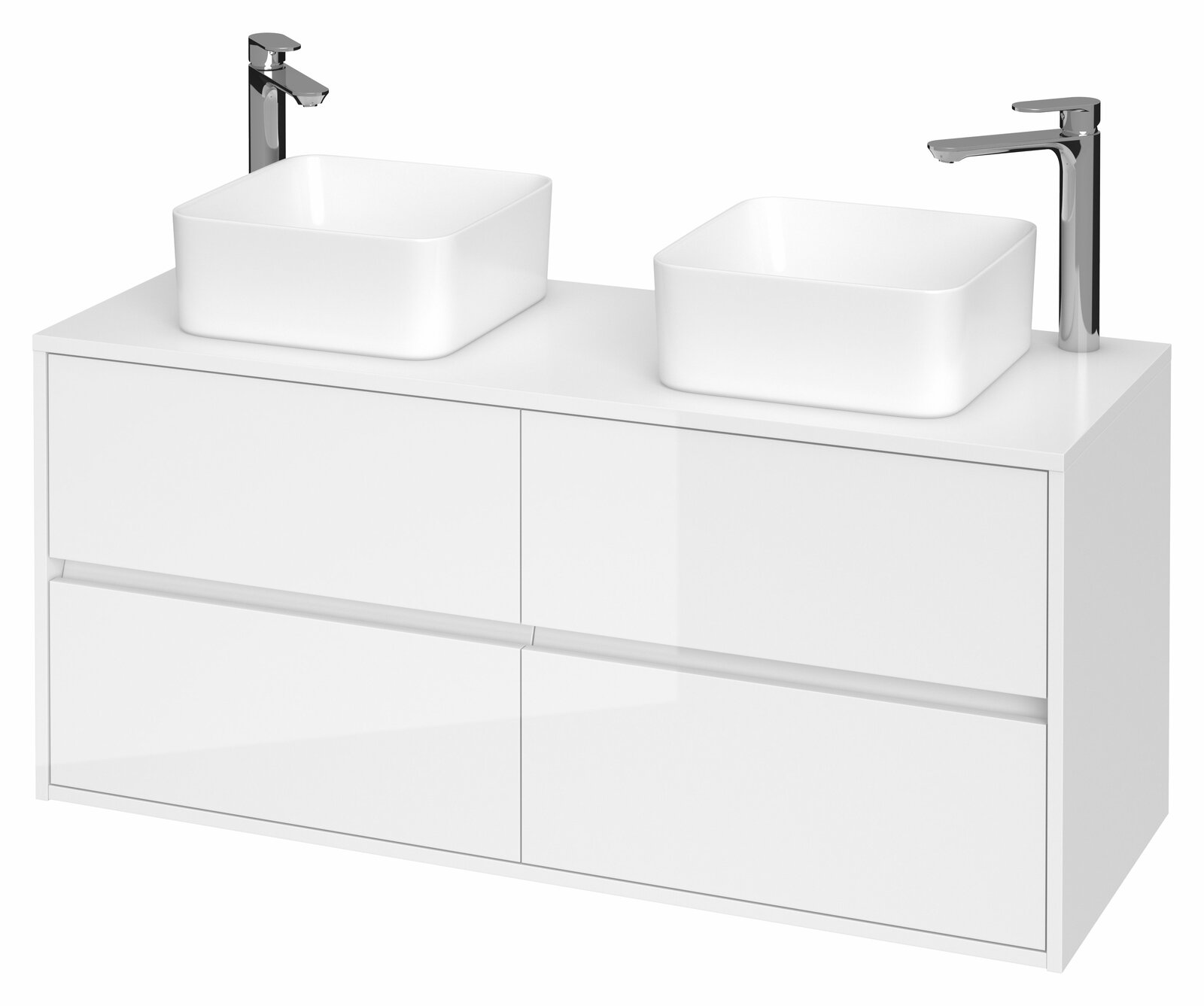 Závěsná dvojumyvadlová skříňka CREA 120 se čtyřmi výsuvnými boxy v bílém provedení, vyrobená moderní technologií AQUASAFE (zvýšená odolnost proti vlhkosti). Skříňka působí elegantním vzhledem díky zapuštění přední části a využití skrytých madel. Zásuvky jsou vybavené pojezdy "HAFELE" s plným výsuvem a tichým uzavíracím systémem, který zvyšuje komfort používání.