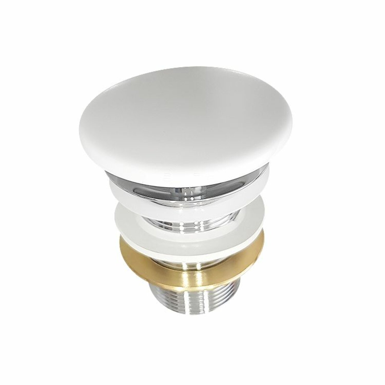 Bílá keramická zátka s odolným mosazným mechanismem a silikonovým těsněním. Tento elegantní design zajišťuje těsnost a spolehlivost. Určeno pro použití s dřezy bez přepadů.