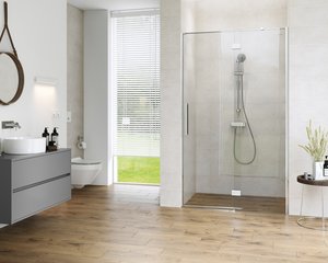 Sprchový kout CREA je vyroben z tvrzeného bezpečnostního skla o tloušťce 8 mm, zajišťující konstrukční stabilitu a bezpečný provoz. Sklo je opatřeno ochranným hydrofobním povlakem CleanPro, který účinně zabraňuje usazování vodního kamene a nečistot a usnadňuje tak udržování sprchového koutu v čistotě. Chromovaný horní profil chrání válečky před kontaktem s vodou a čisticími prostředky. Esteticky zakrývá válečky a poskytuje hladký, jednotný povrch na horní části sprchového koutu, a to jak uvnitř, tak vně. Systém soft-close dveří zajišťuje pohodlné každodenní používání. Oboustranné rukojeti vyrobené z vysoce kvalitního kovu spojují odolnost a funkčnost. Sprchový kout je vybaven funkčním stěnovým profilem, který se přizpůsobí nerovnostem stěny do 15 mm. Chromové detaily s jemně třpytivým povrchem zdůrazňují moderní a minimalistický design sprchového koutu. Stříbrná magnetická těsnění vytvářejí esteticky příjemný vzhled s chromovými detaily sprchového koutu a zvyšují uživatelský komfort. Vysoká kvalita výrobku je potvrzena dlouhodobou zárukou. K doplnění kabiny je k dispozici široká škála lineárních odtoků a sprchových van v různých barvách a výškách, což umožňuje flexibilní konfiguraci. Obdélníková rohová kabina je vysoká 200 cm, má 120 cm široké dveře a 90 cm širokou stěnu a má posuvné dveře, které lze instalovat vlevo nebo vpravo, s průhledným sklem.