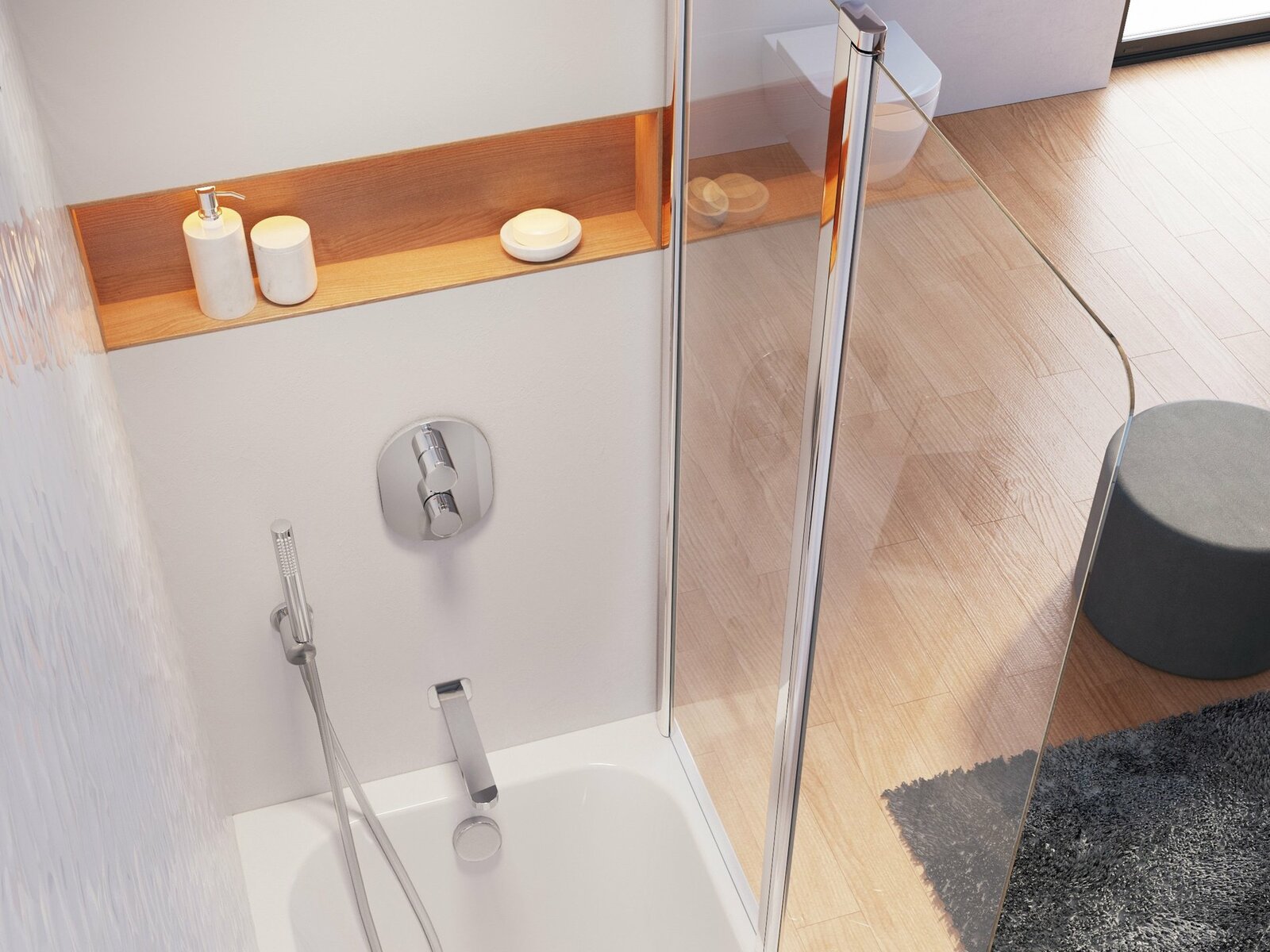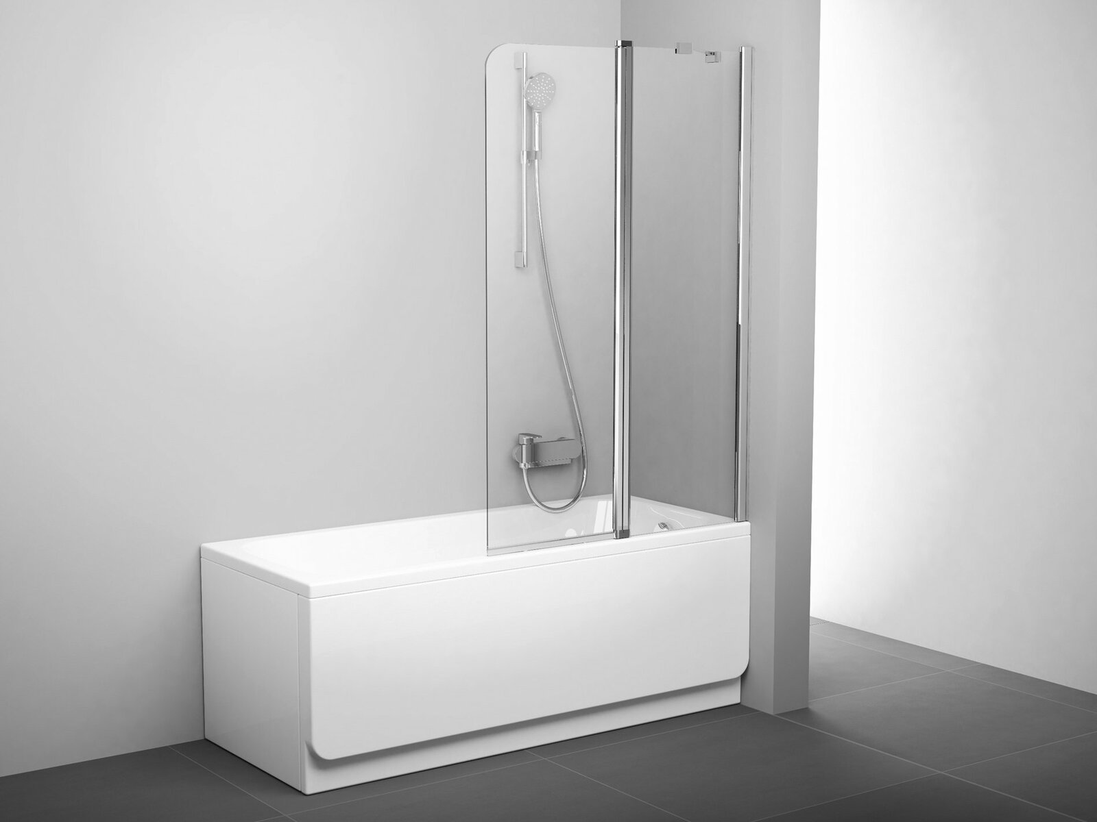 Dvoudílná pohyblivá vanová zástěna na obdélníkové vany. Díky otočnému sloupku lze její pohyblivý díl otevřít do vnitřního prostoru vany nebo vytočit ven. V provedení lesklý chrom a s výplní z čirého skla s ochrannou vrstvou Ravak AntiCalc®. Pravá varianta.- rozměry: 100 cm
