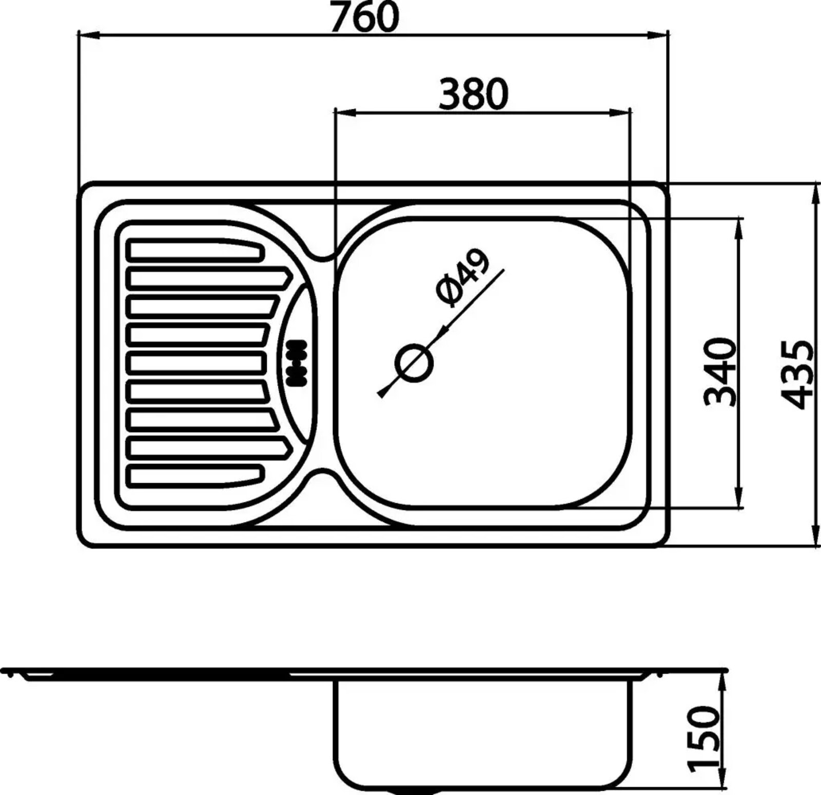Kuchyňský dřez Novaservis nerezový, 76x44 cm, s odkapem, s přepadem, nerez, DR43/76