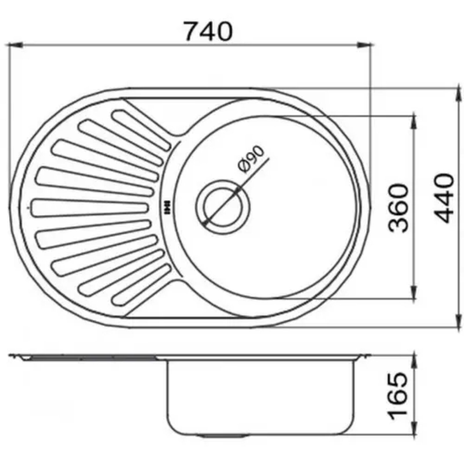 Kuchyňský dřez Novaservis nerezový, 74x44 cm, s odkapem, s přepadem, nerez, DR44/74