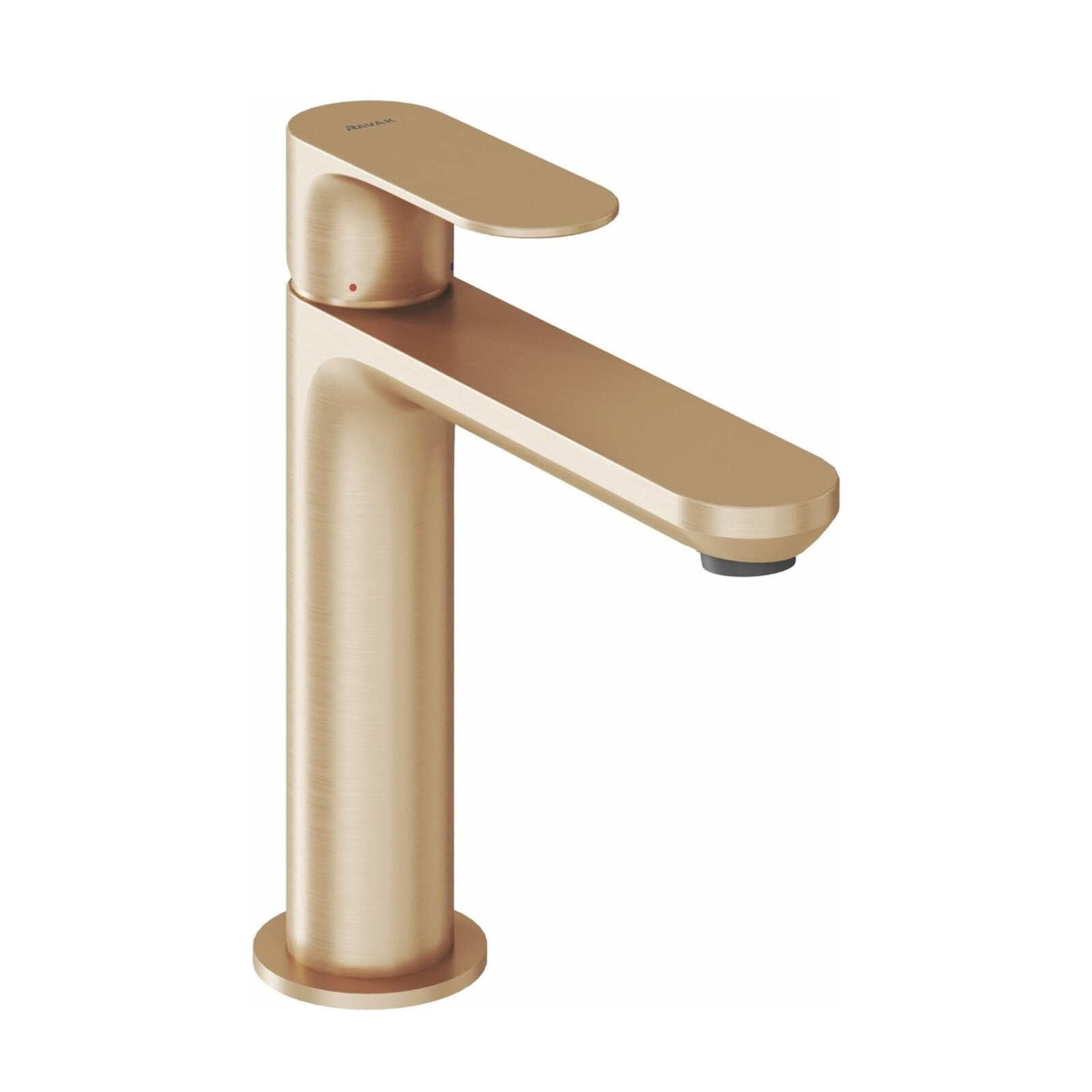 Stojánková umyvadlová baterie Eleganta, bez výpusti. V provedení Rose Gold Brushed. Zapuštěný perlátor s funkcí EcoFlow.- výška baterie: 174 mm