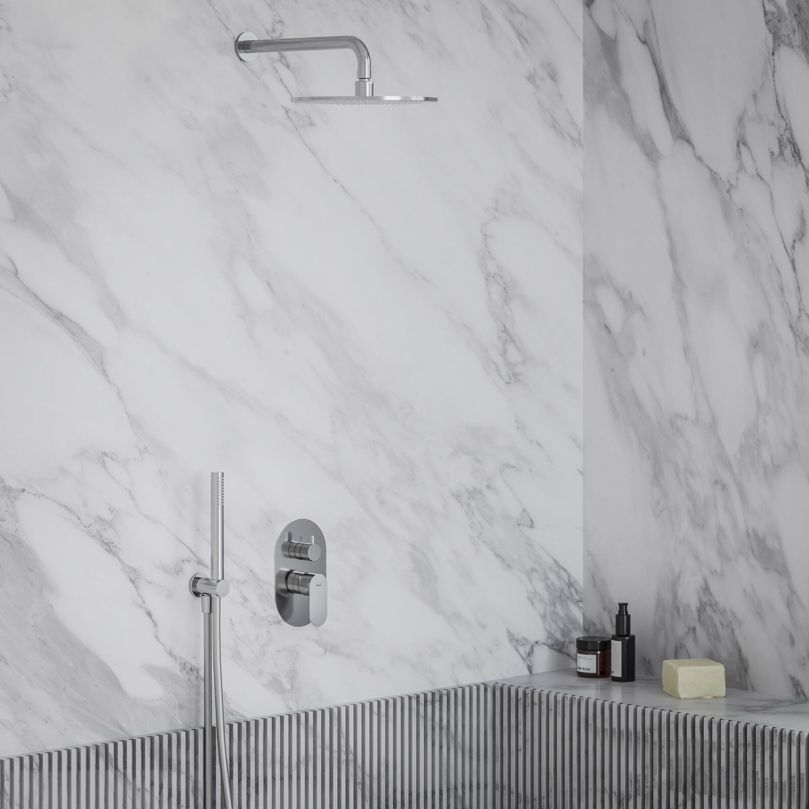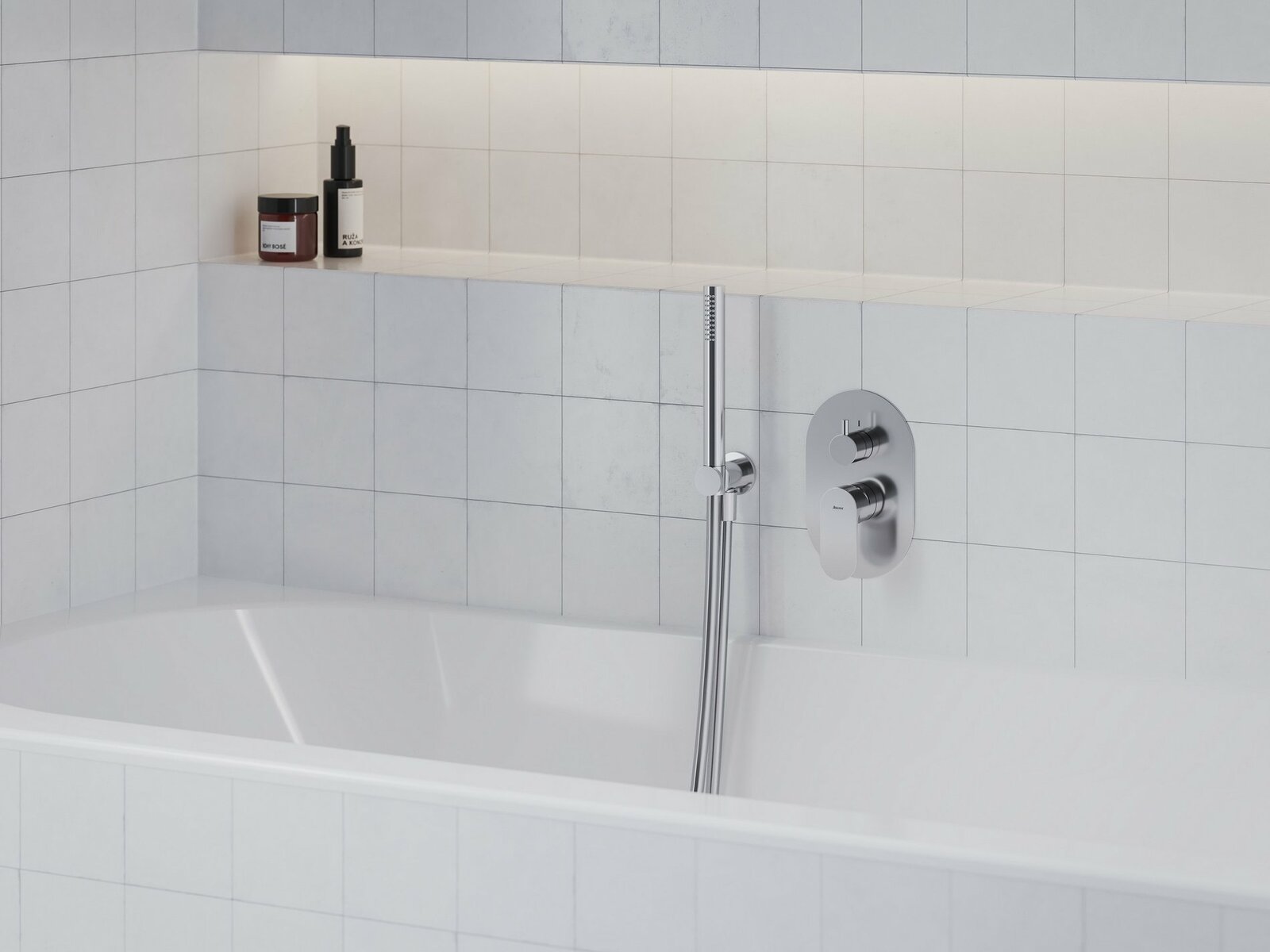 - pro sprchové kouty, které mají pevnou hlavovou a ruční sprchu