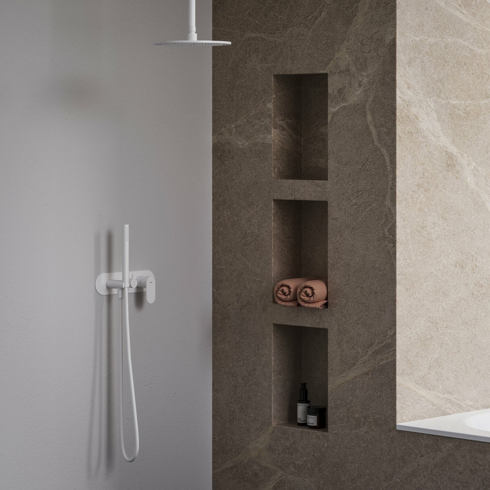 Podomítková 2cestná baterie Eleganta, se sprchovým setem, určená pro R-box. V provedení White Velvet.- kartuš (průměr, materiál): 35 mm, keramická